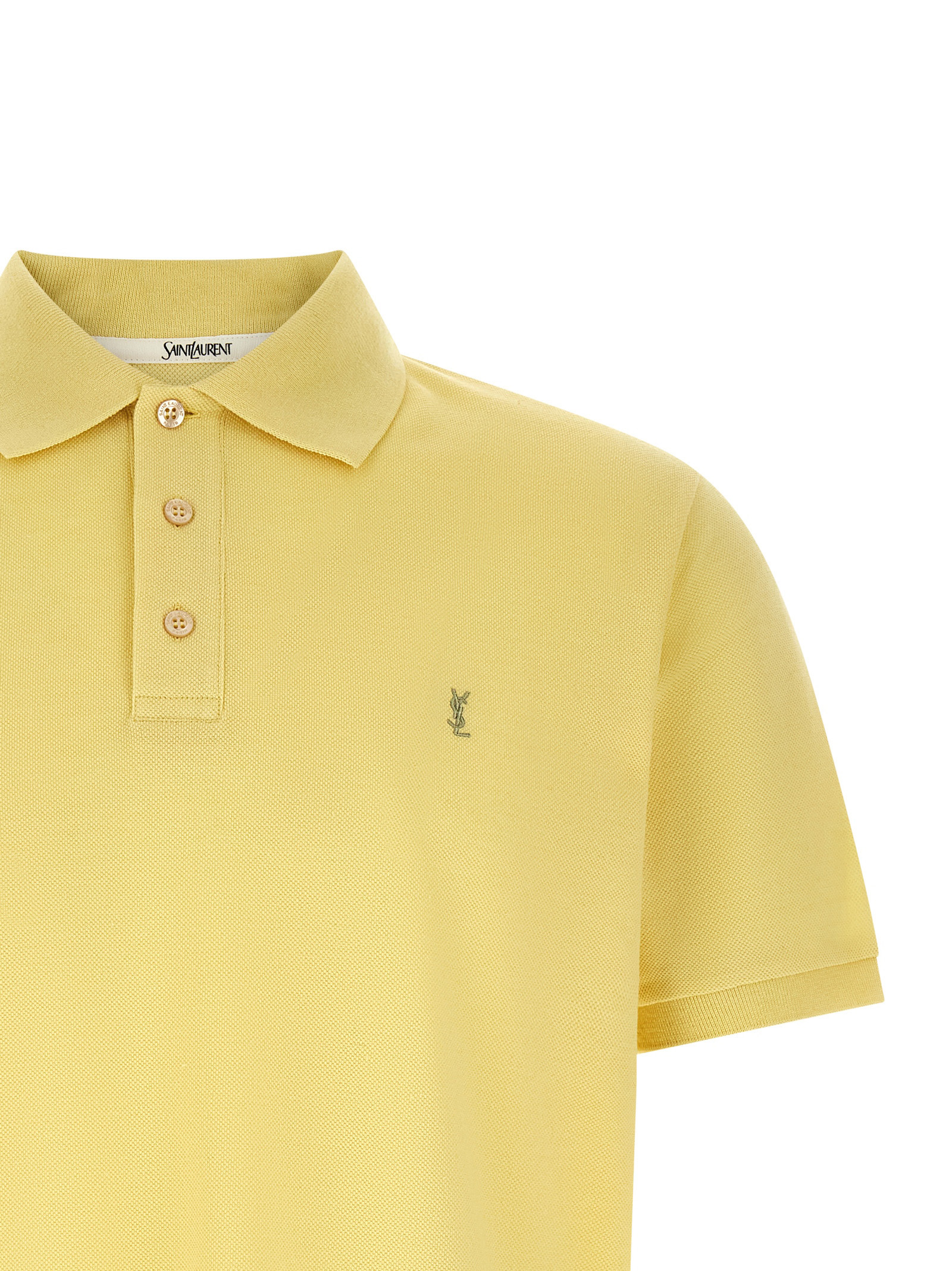 Polo shirt in piqué cotton with tone-on-tone embroidered ‘Cassandre’ logo on the front, collar and buttons, short sleeves with cuffs, side slits on an asymmetrical hem.