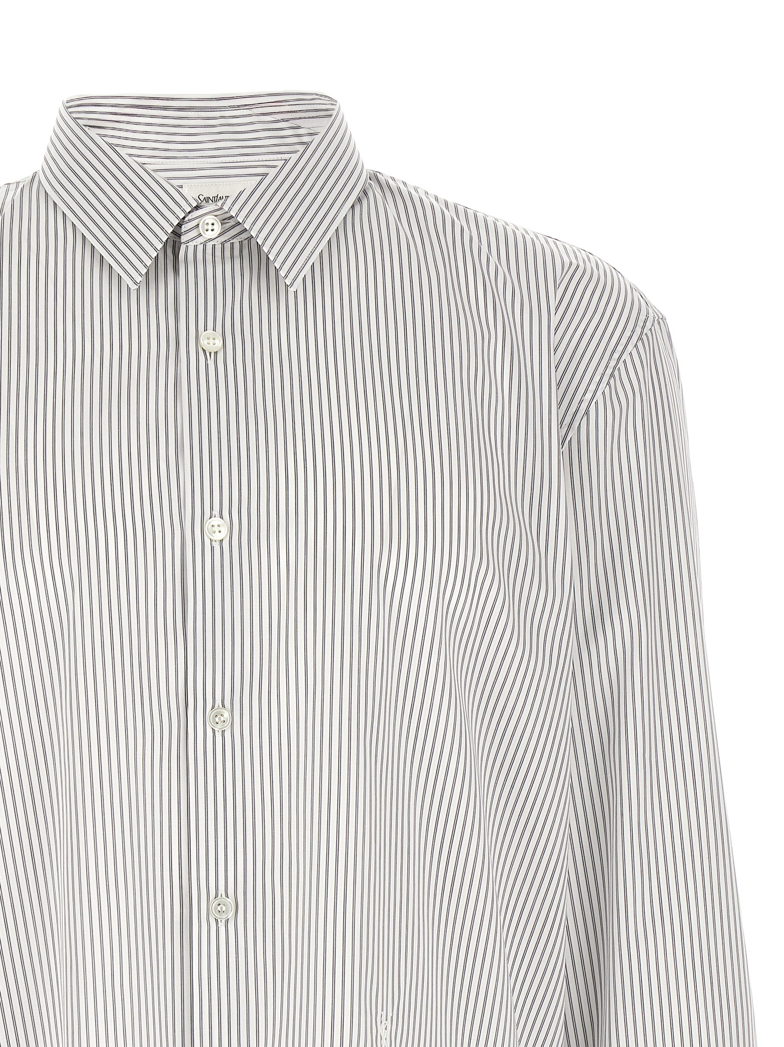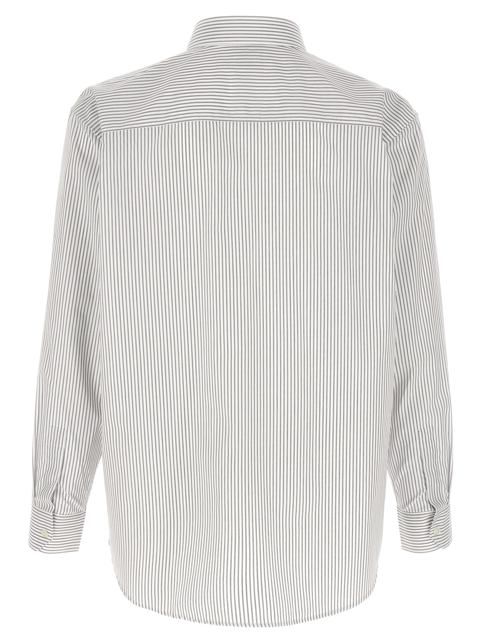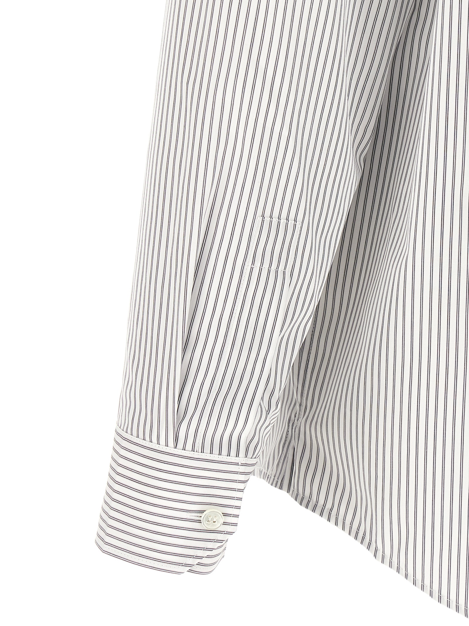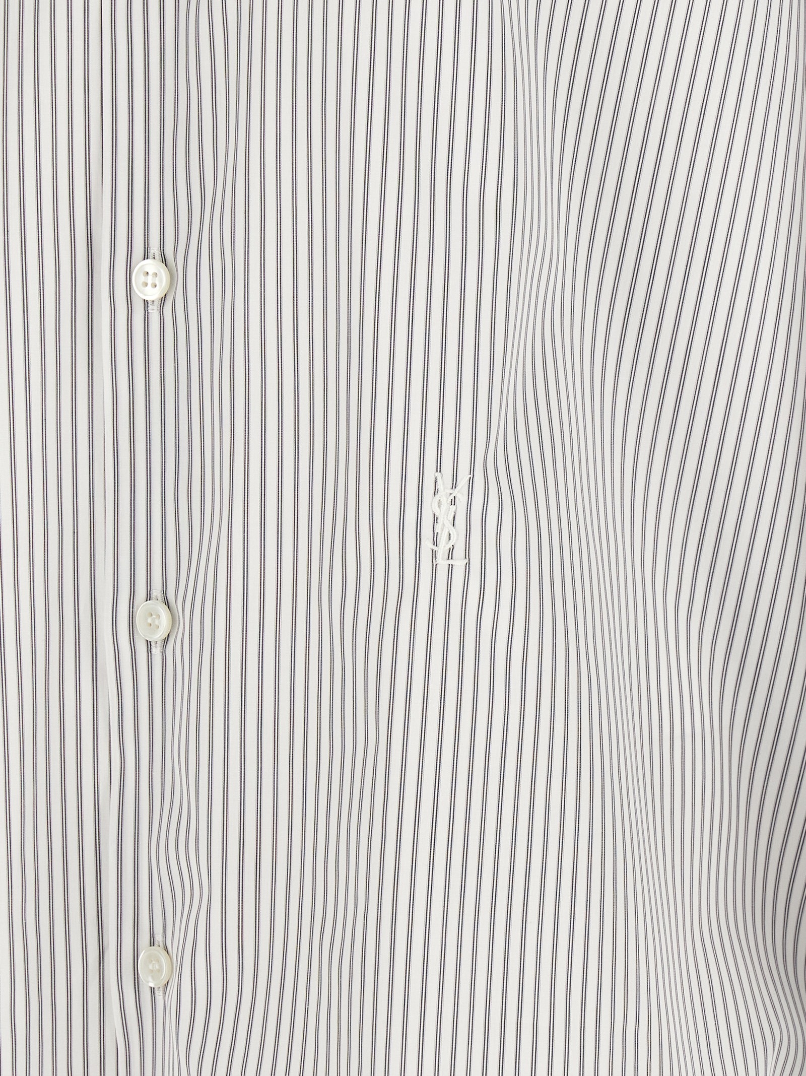 Striped cotton poplin shirt with ‘Cassandre’ embroidered logo and front button closure, Yves pointed collar, long sleeves with beveled cuffs and rounded hem.