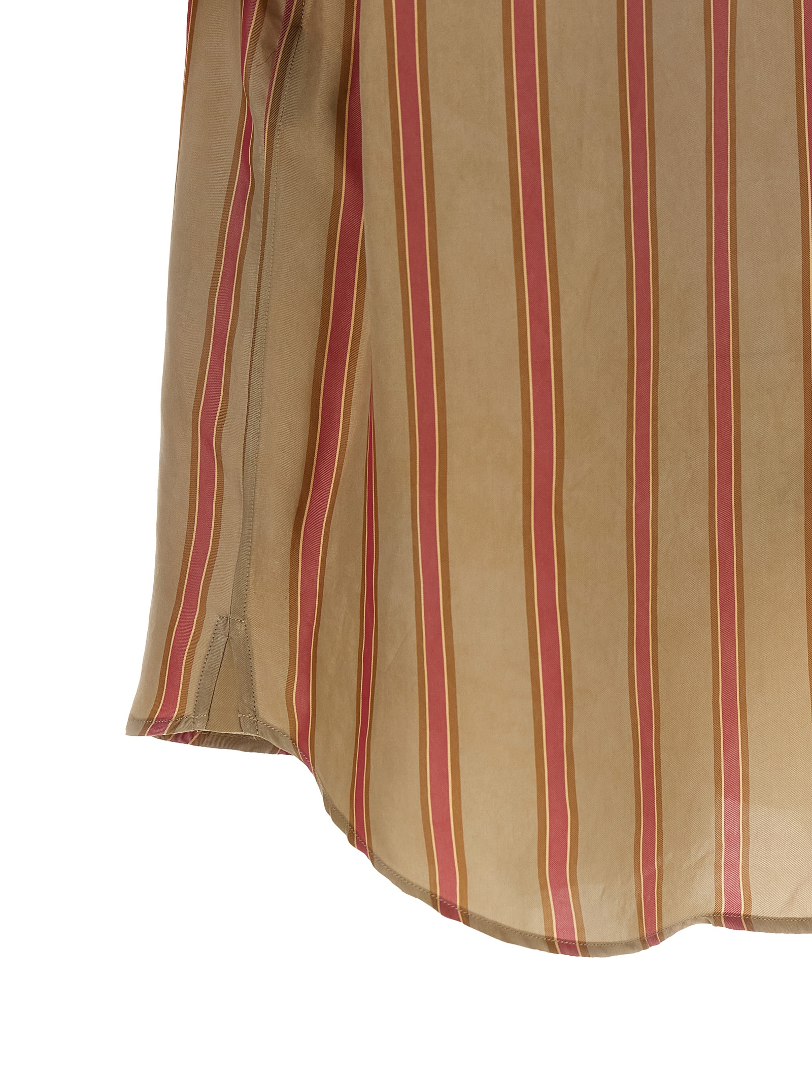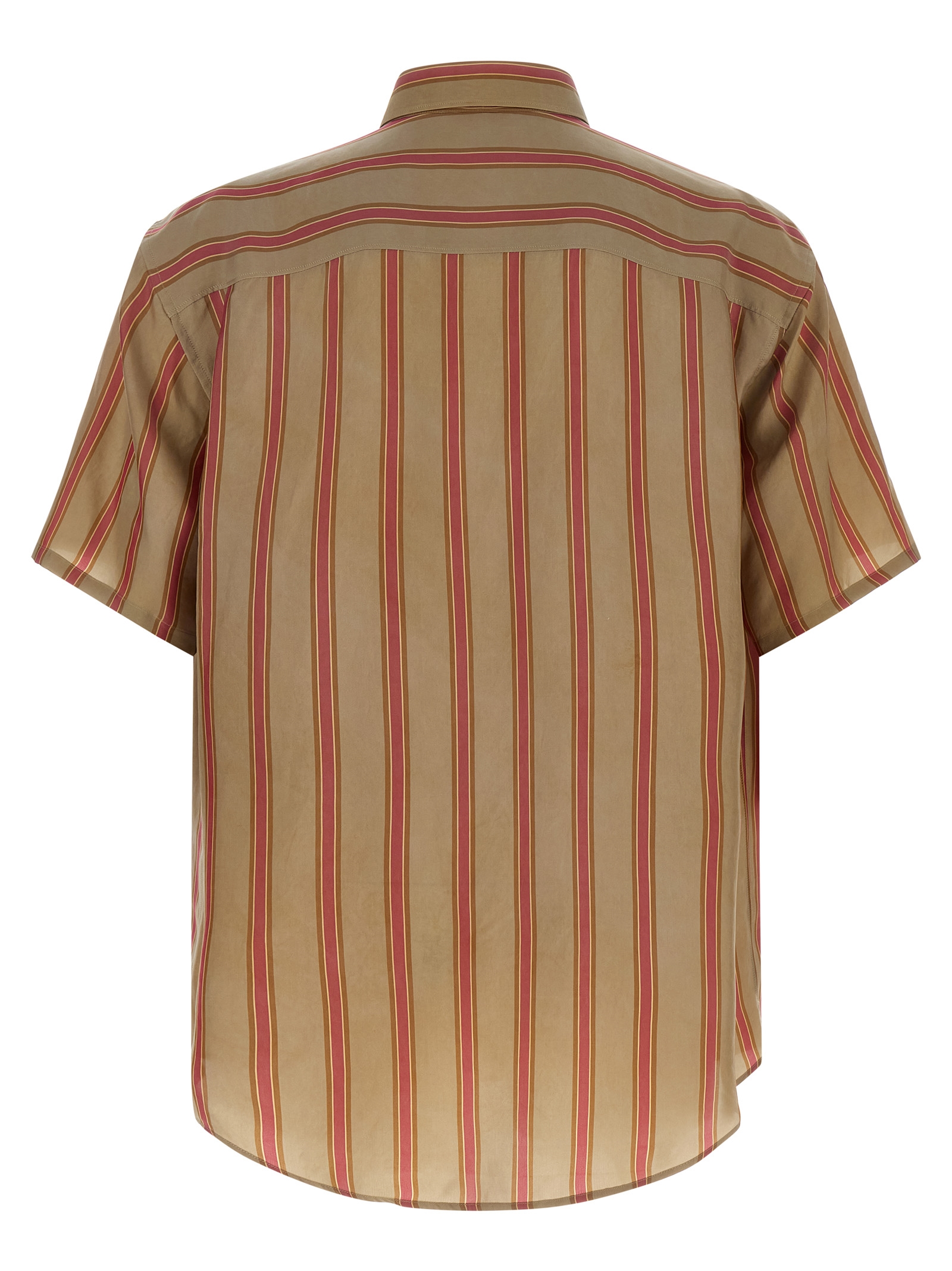 Cupro striped shirt, pocket with embroidered ‘Cassandre’ logo, pointed collar, front mother-of-pearl button closure, short sleeves with dropped shoulders.