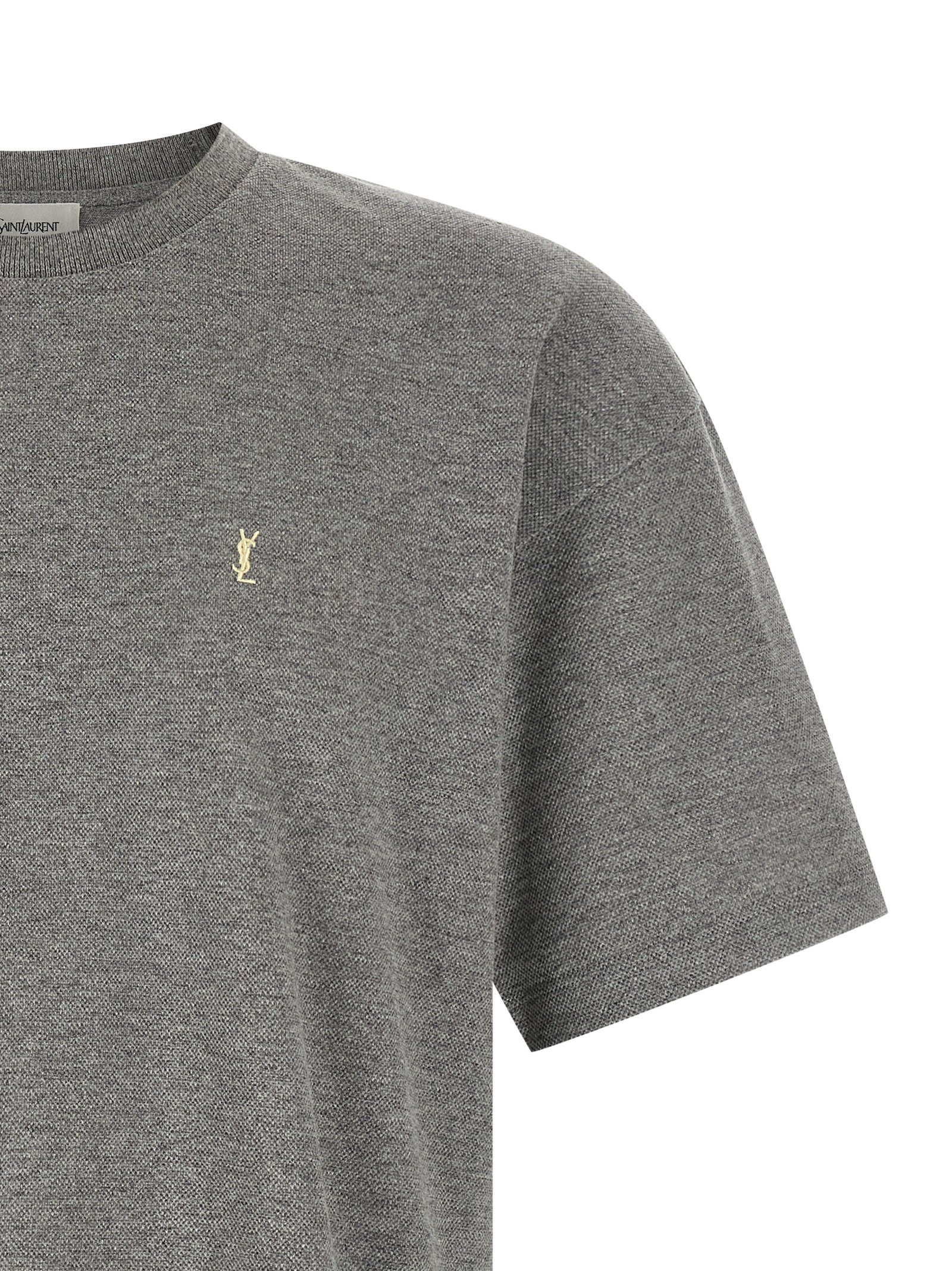 Piqué cotton blend T-shirt, front ‘Cassandre’ logo embroidery, crew neck, short sleeves with dropped shoulders.