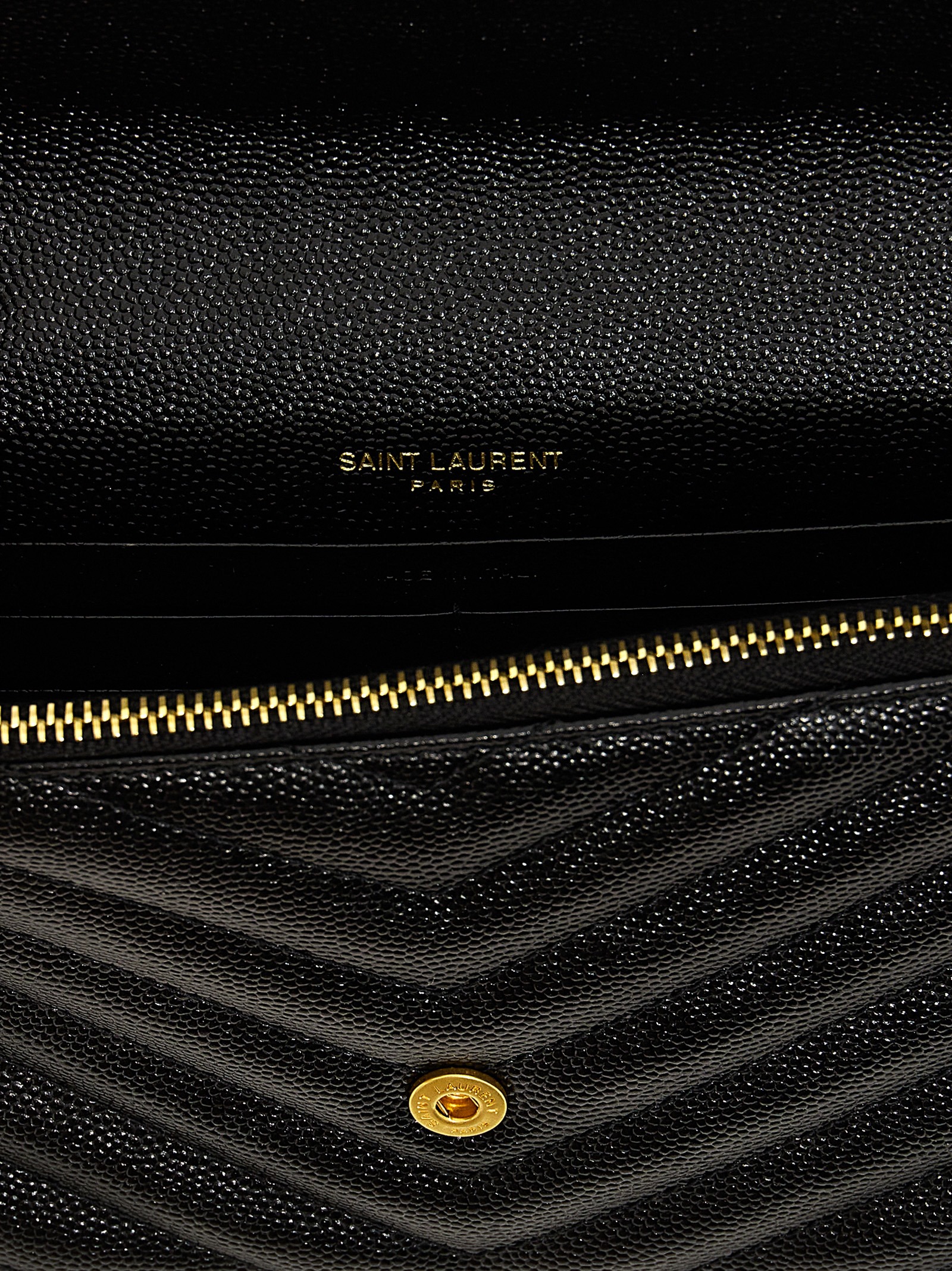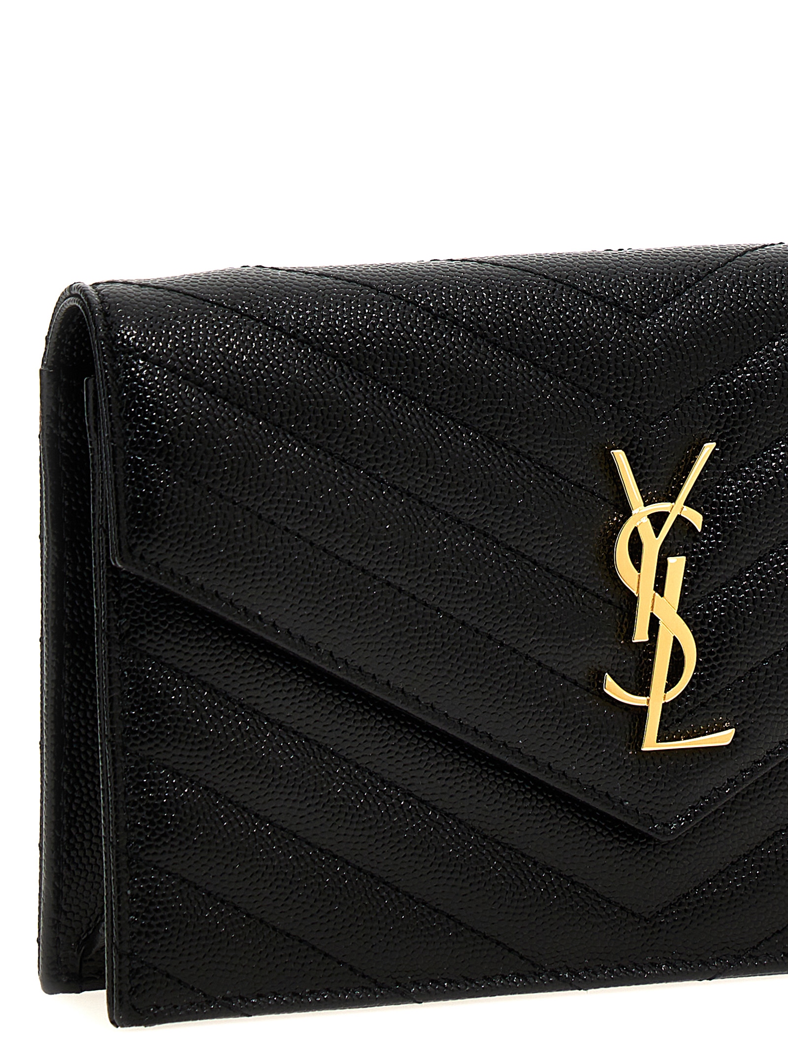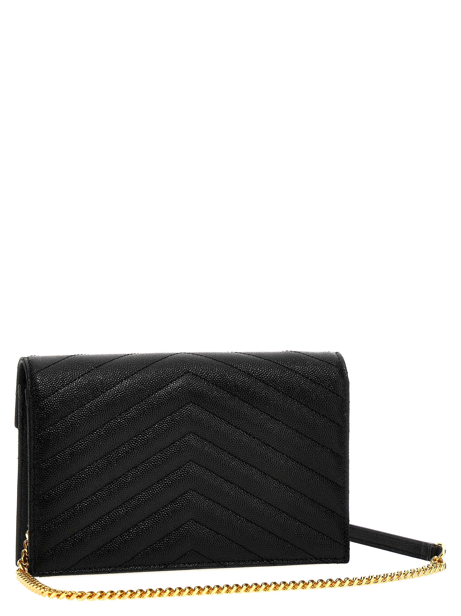 ‘Cassandre’ wallet in matelassé grain de poudre leather, flap closure, frontael logo appliqué, chain and leather shoulder strap.