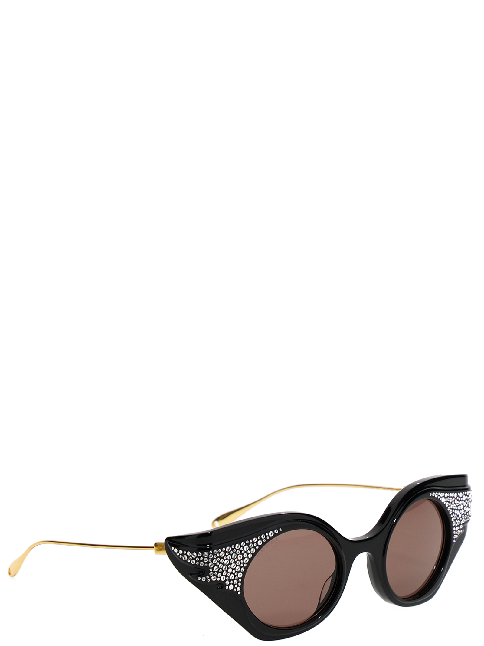 Cat eye acetate sunglasses with sequin appliqués, colored lenses and gold metal temples.