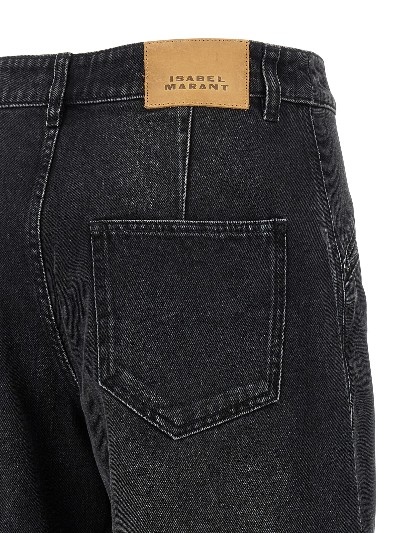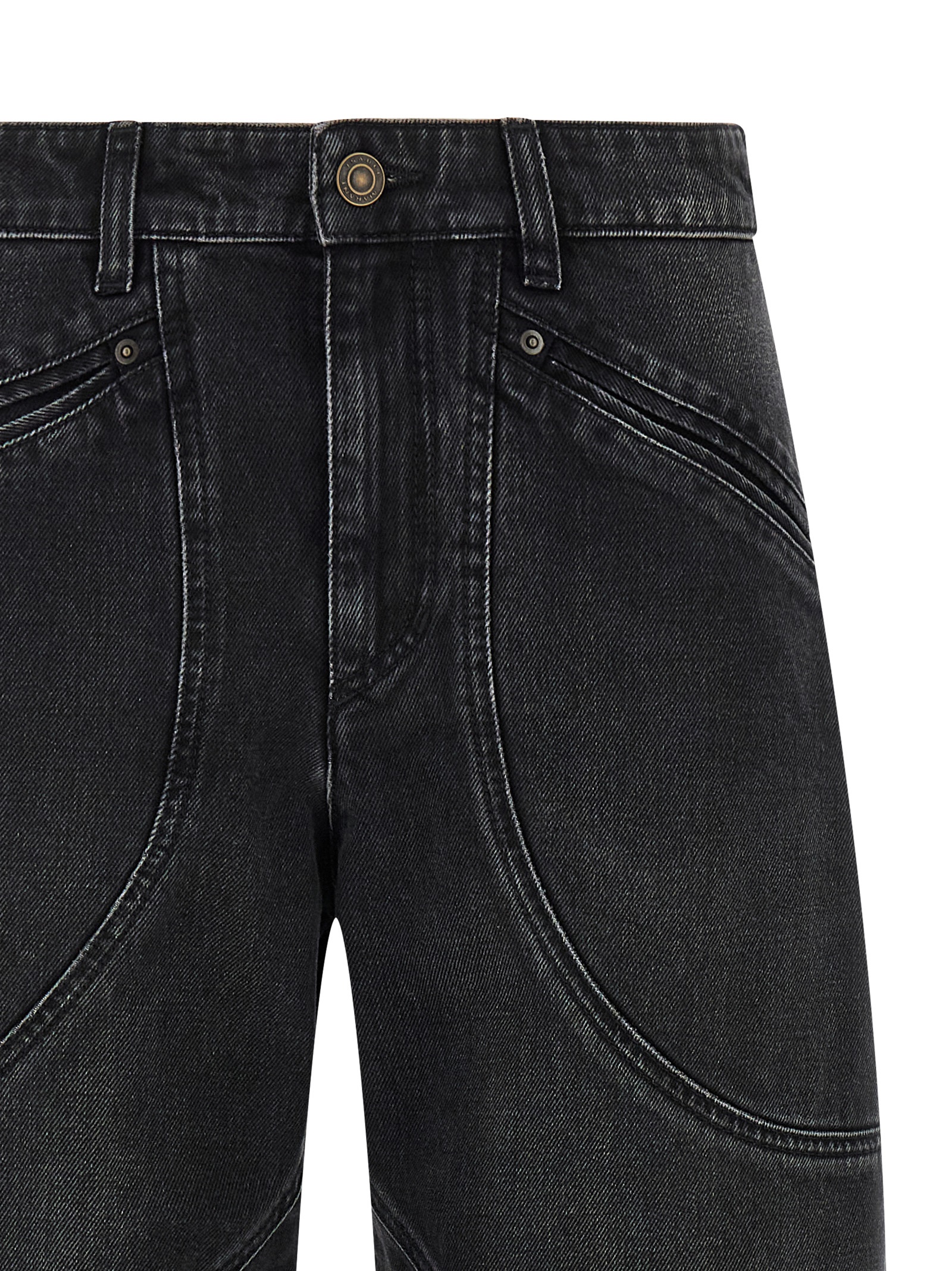 ‘Catarina’ stonewashed cotton denim jeans with stitching and contrast stitching, straight leg, front zip and button closure, five pockets, back logo tag.