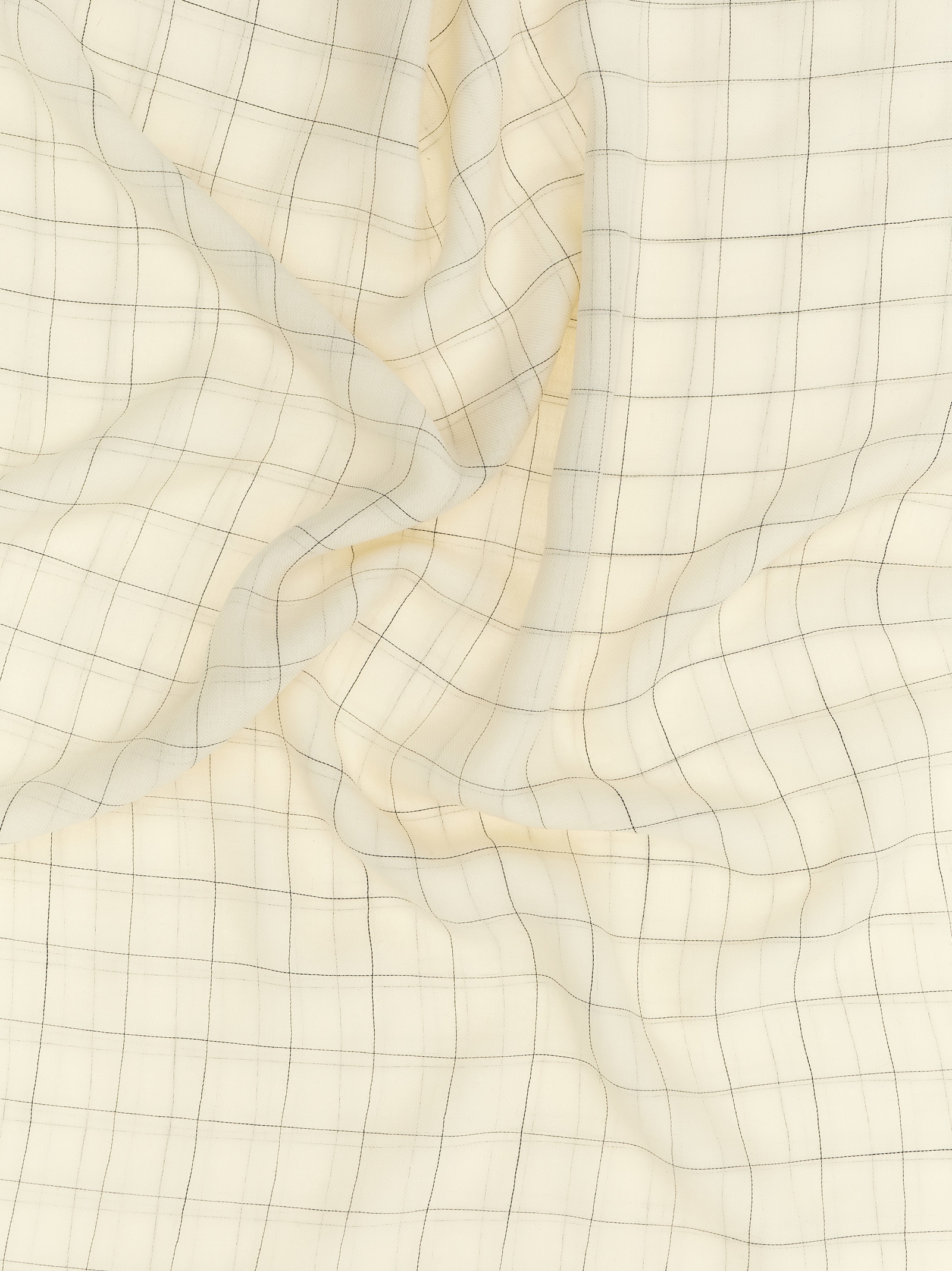 Extra light mercerized wool scarf with checks and fringes at the edges.