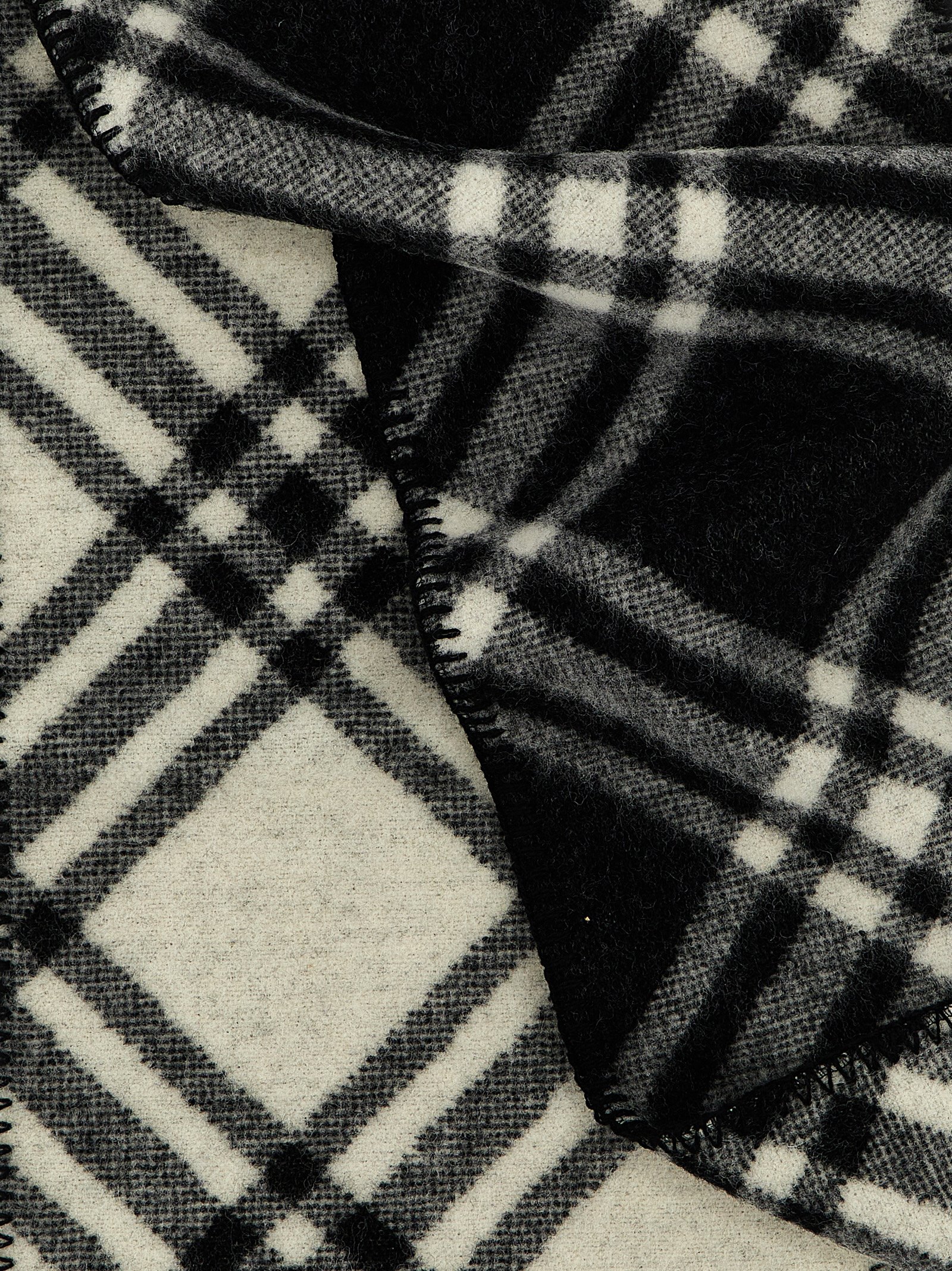 Check pattern wool scarf, Equestrian Knight Design label, festoon stitch at the edges.