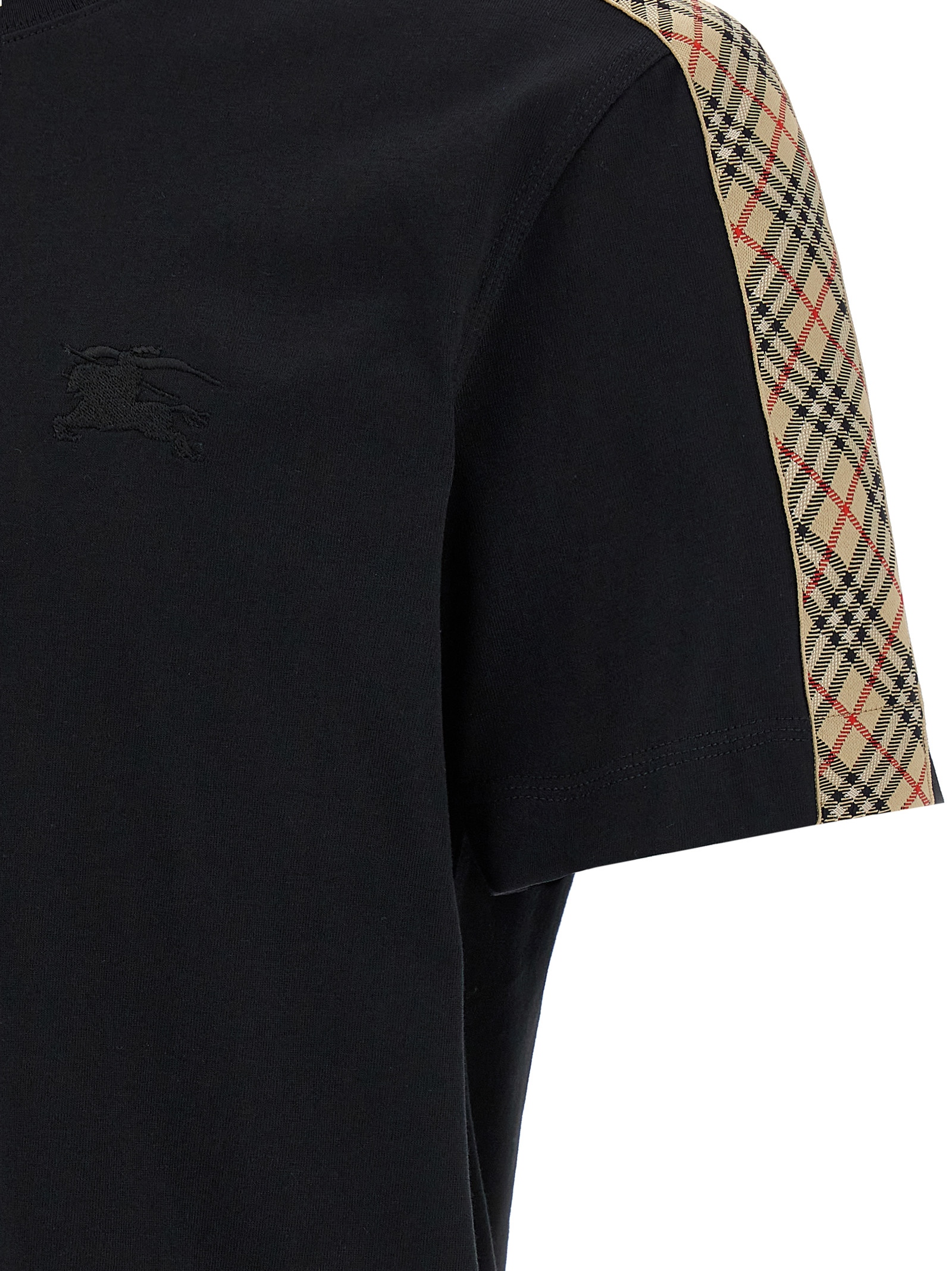 Light cotton jersey T-shirt with Burberry Check ribbons, tone-on-tone Equestrian Knight Design embroidery on the front, crew neck, and short sleeves.