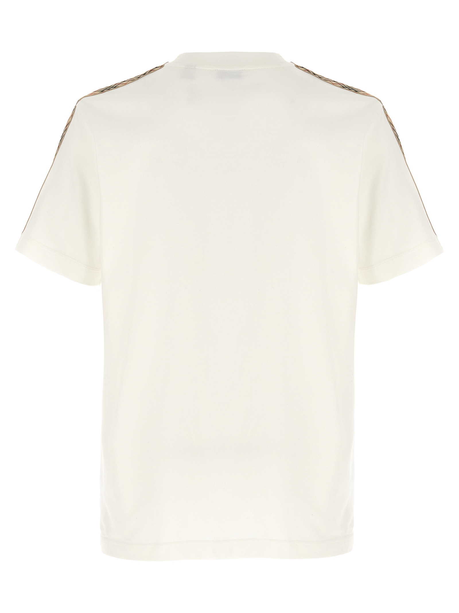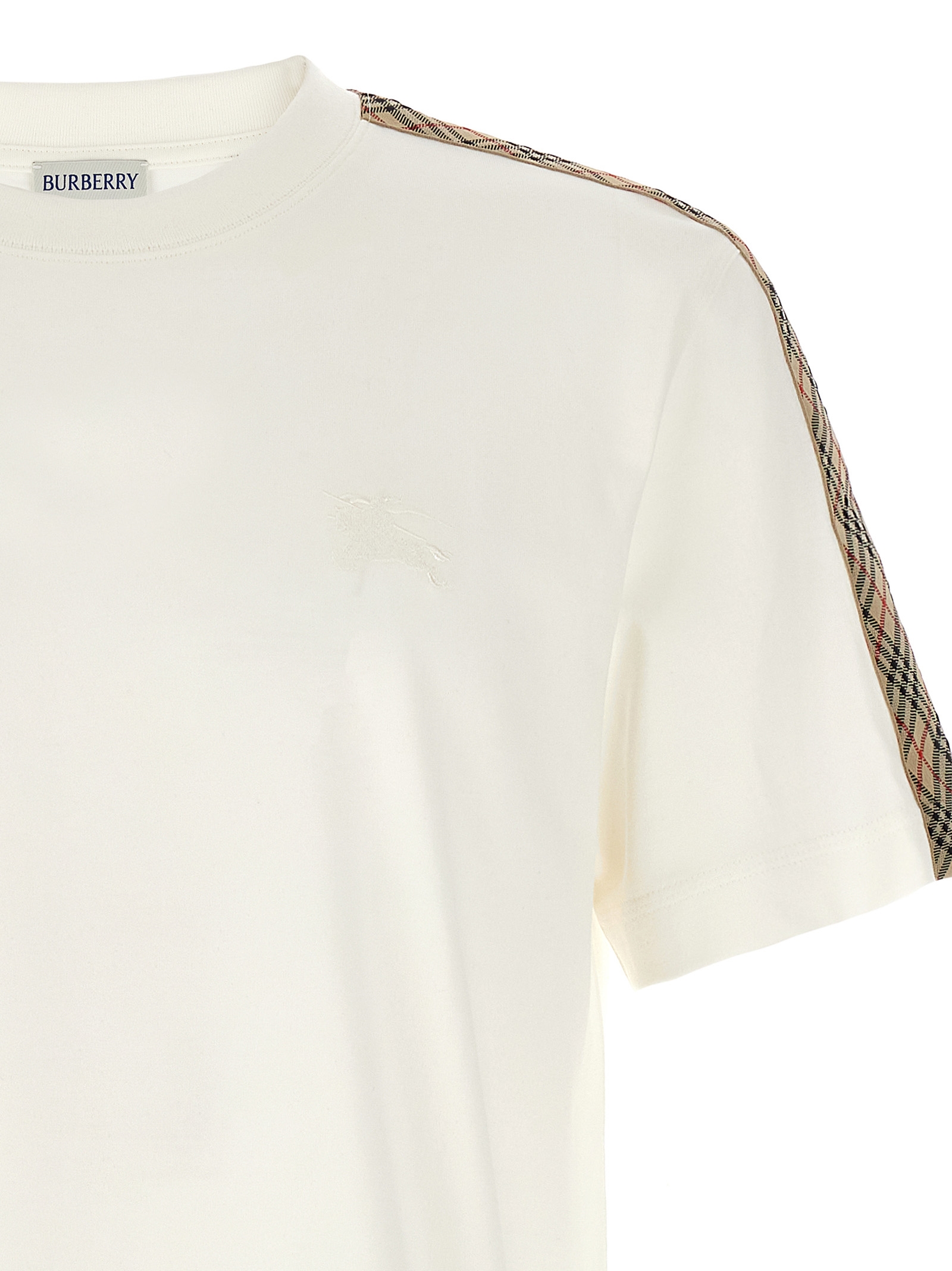 Cotton jersey T-shirt with tone-on-tone Equestrian Knight Design embroidery on the front, crew neck, short sleeves with Burberry Check ribbons.