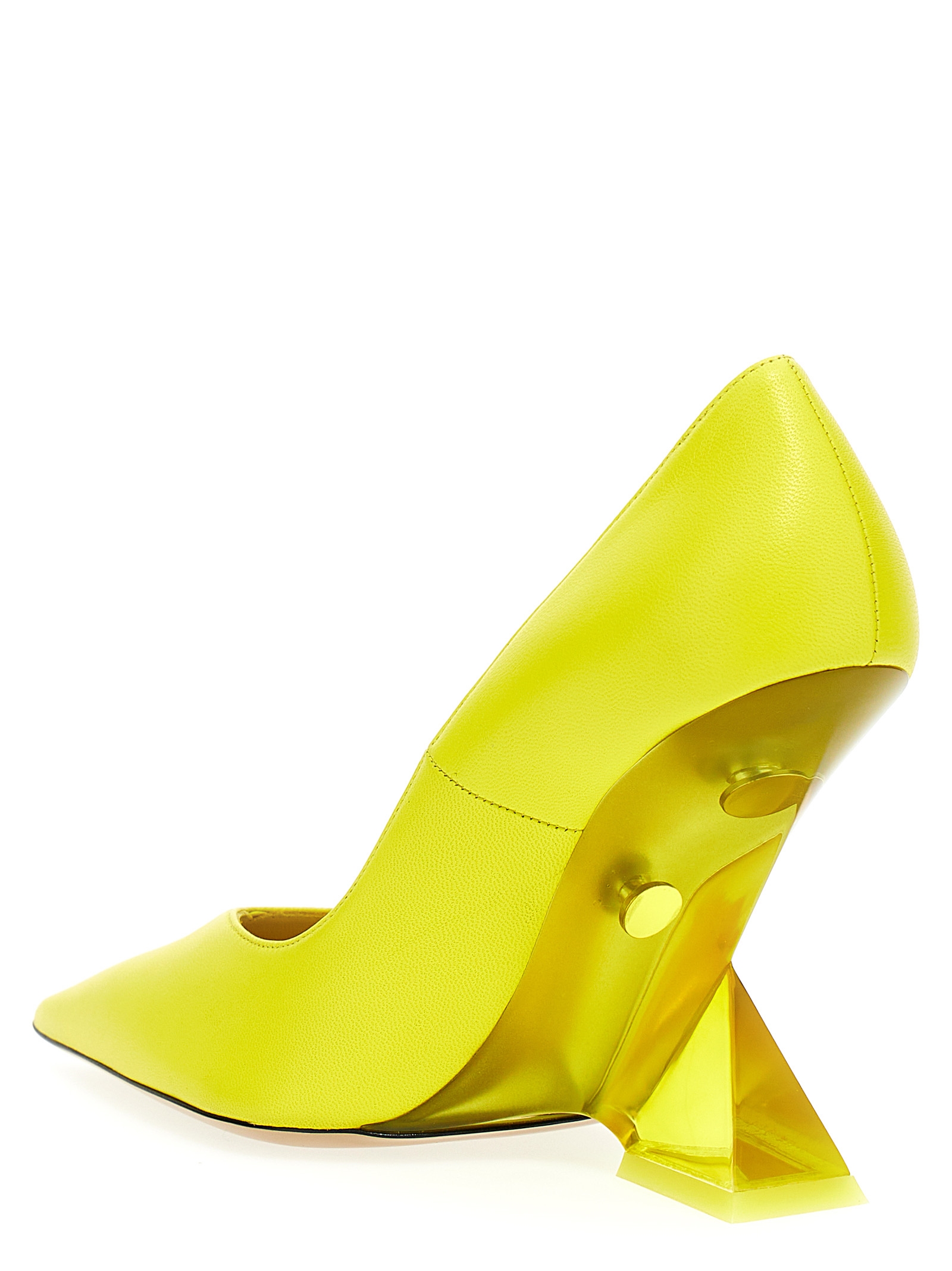 Cheope’ leather pumps with pointed toe and sculpted heel in a transparent material.