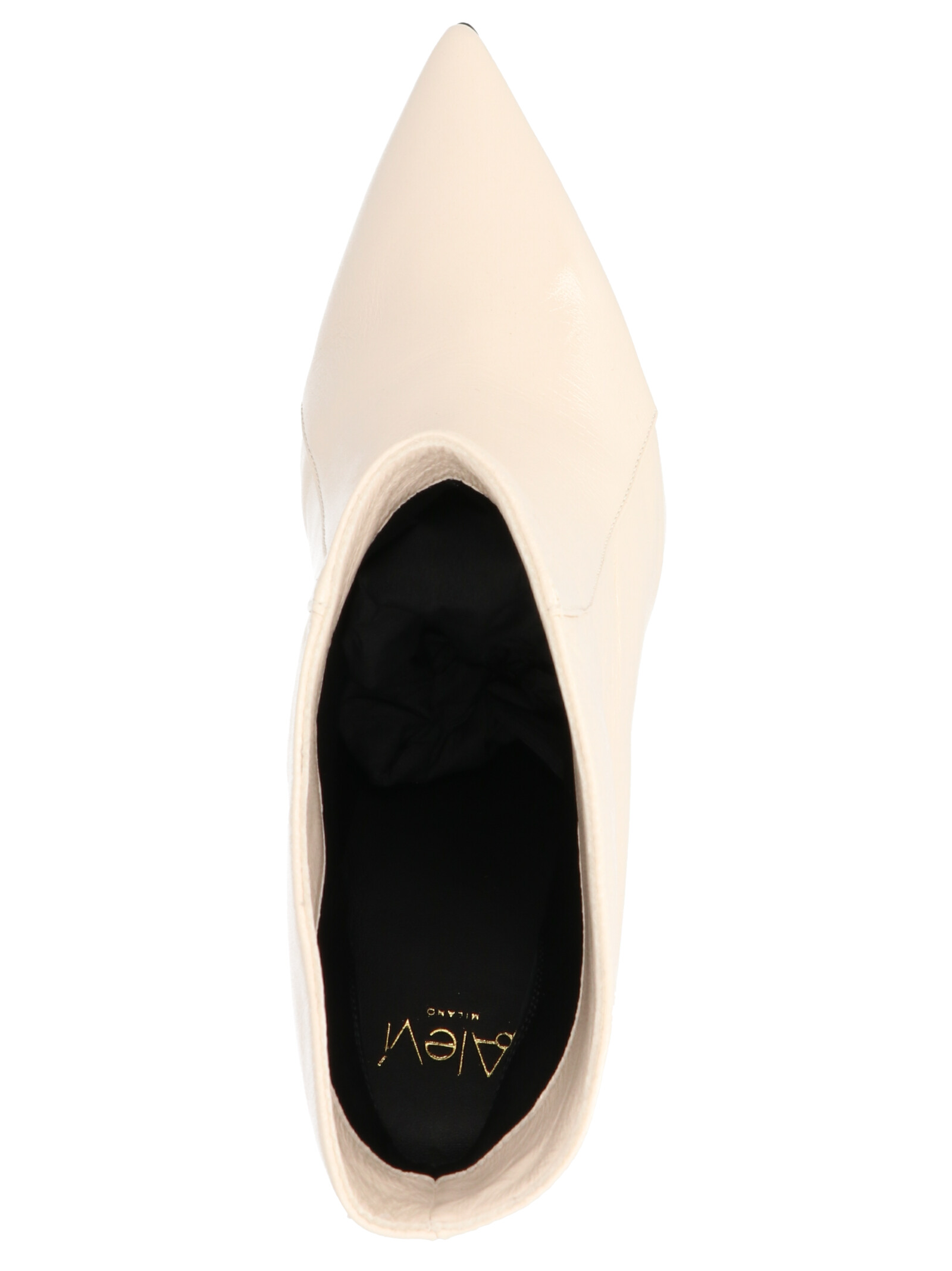 ‘Cher’ shiny leather ankle boots with pointed toe and stiletto heel.