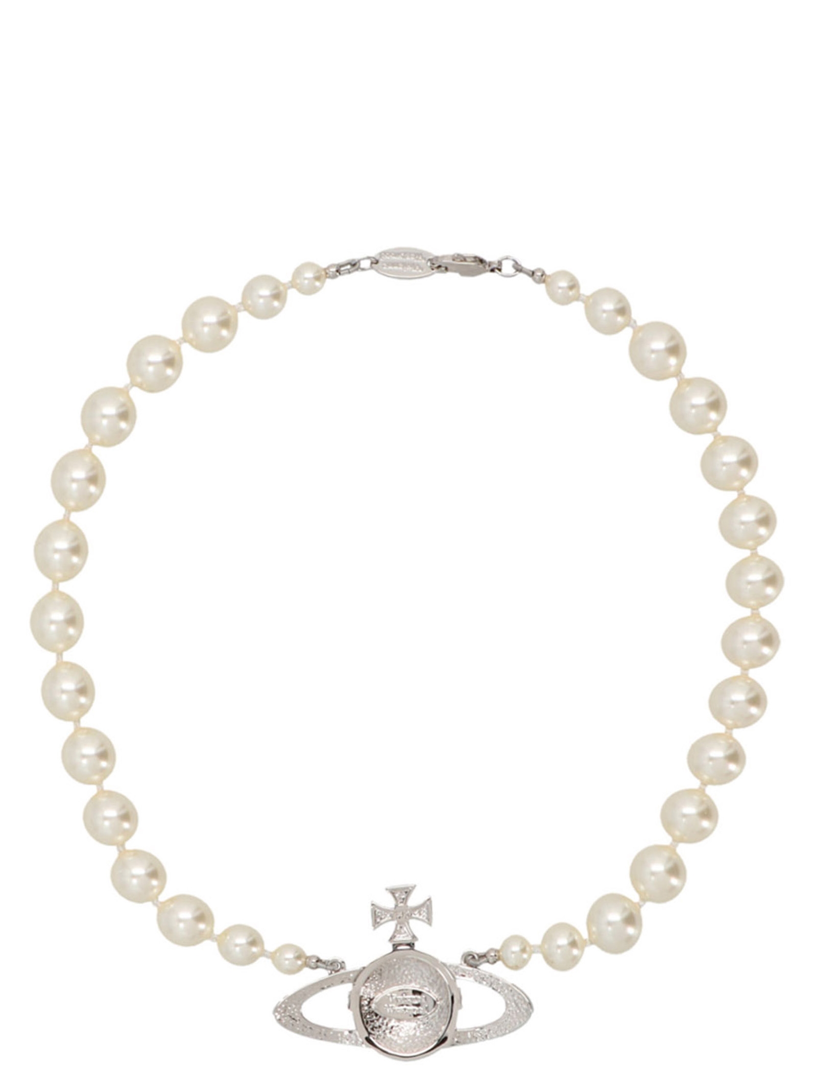 ‘One Row’ choker with pearls and charms with logo.