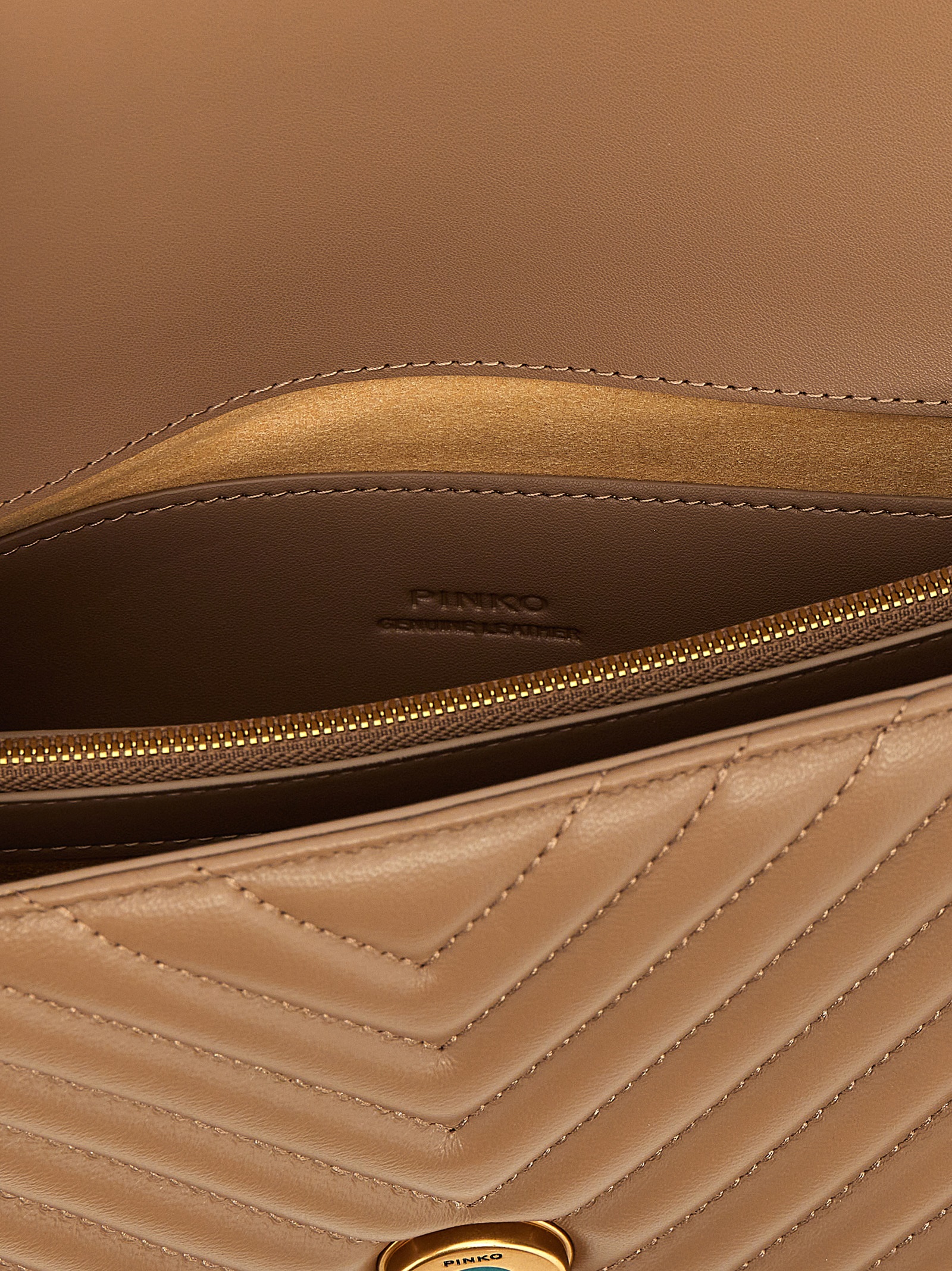 ‘Classic Love Bag One’ chevron quilted nappa leather crossbody bag, metal logo closure, chain and leather shoulder strap.