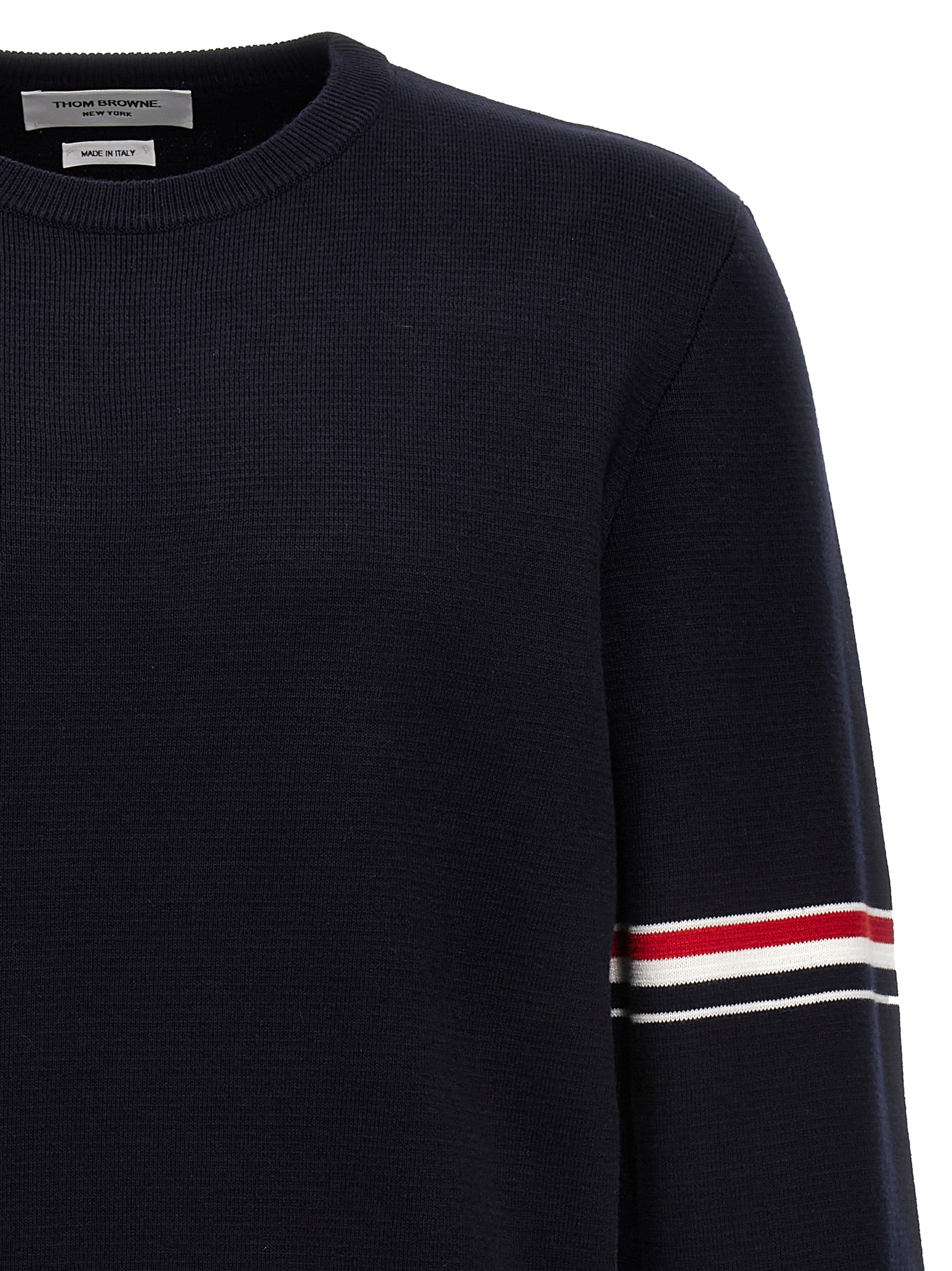 Classic’ thick cotton sweater with crewneck and rwb detail on the sleeves.