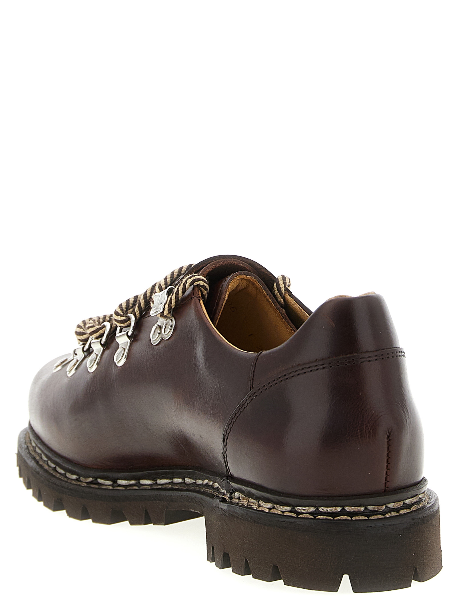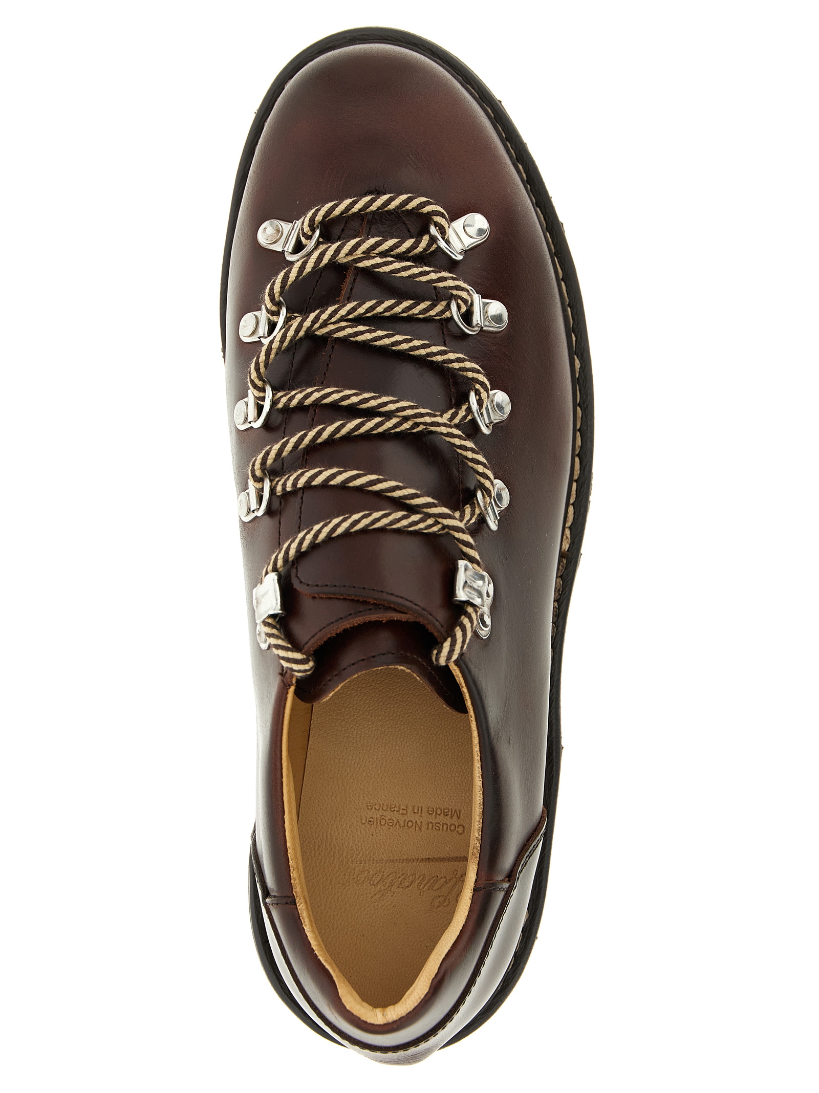 ‘Clusaz’ leather lace-up boots with rounded toe, Norwegian stitching, metal rivet closure, leather lining, natural rubber sole.