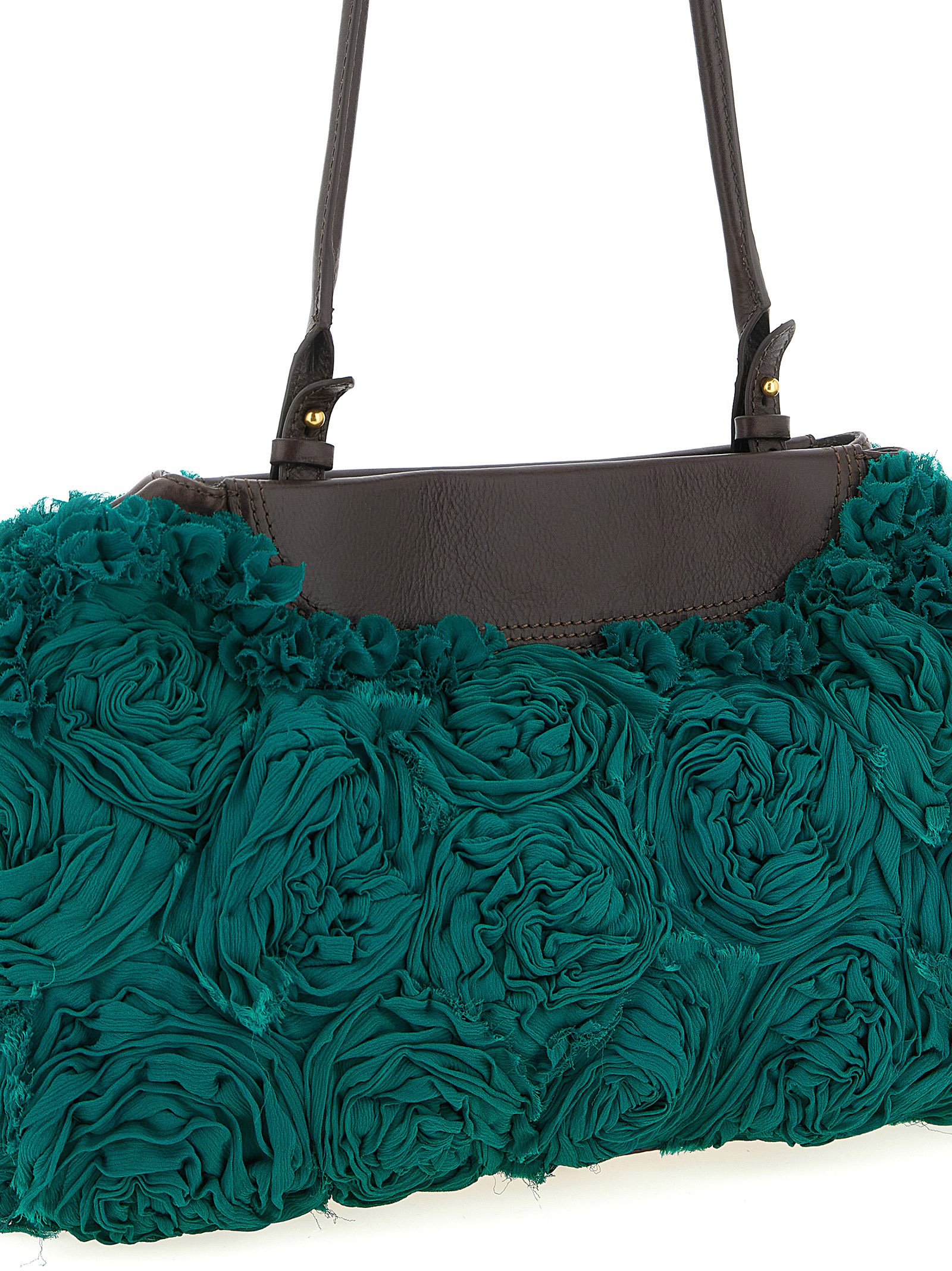 Clutch with roses decorated in viscose and smooth leather blend, side gusset with snap button, internal magnetic closure, rigid base, lining, inner pocket, removable shoulder strap.