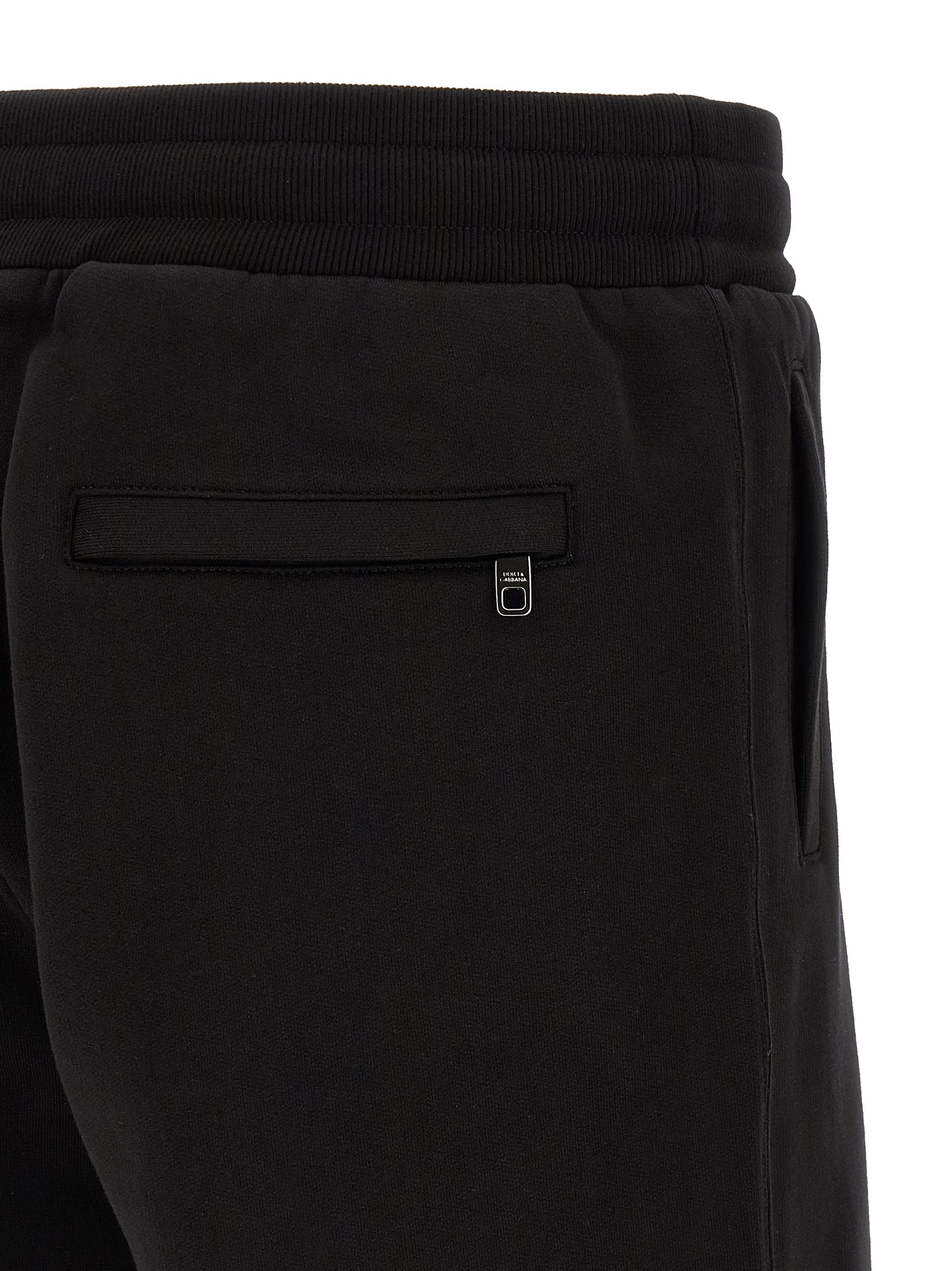 Brushed cotton bermuda shorts, front embroidered crest, drawstring elastic waistband, trompe l’oeil flap, wide leg, pockets.