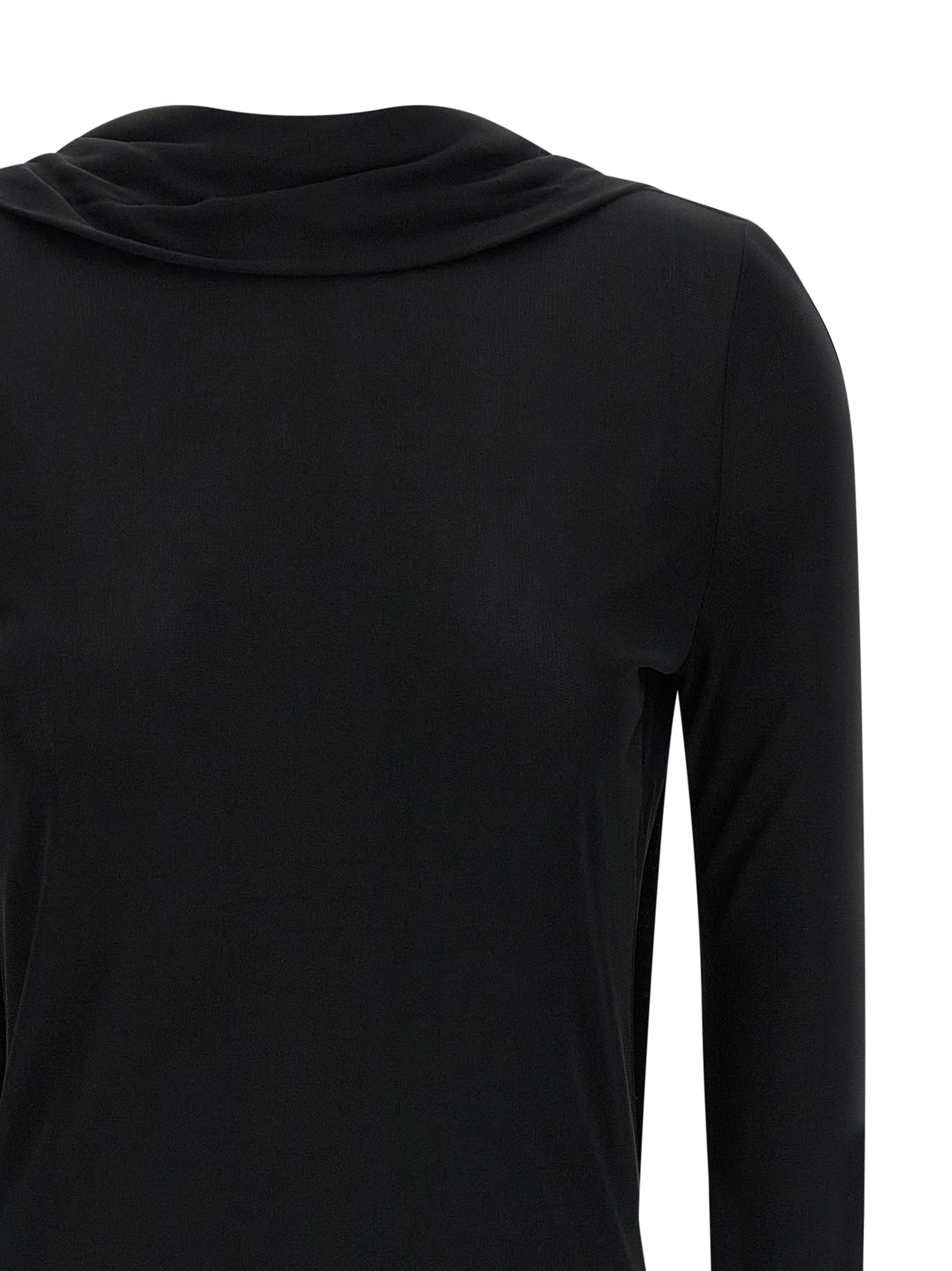 Cocoon Cape’ viscose midi dress with shawl neck on the back with V-neck and draping, long sleeves and an asymmetrical hem.