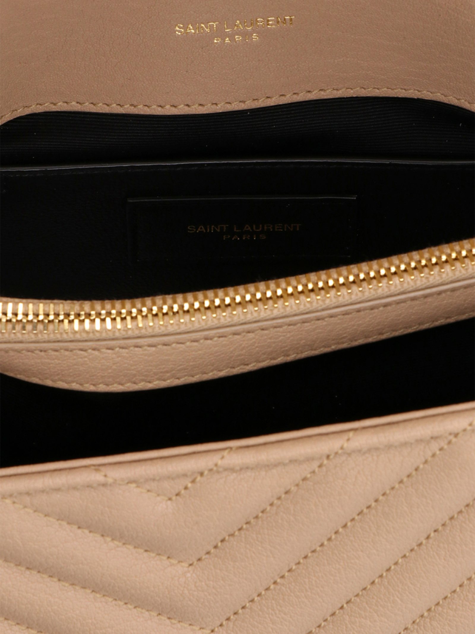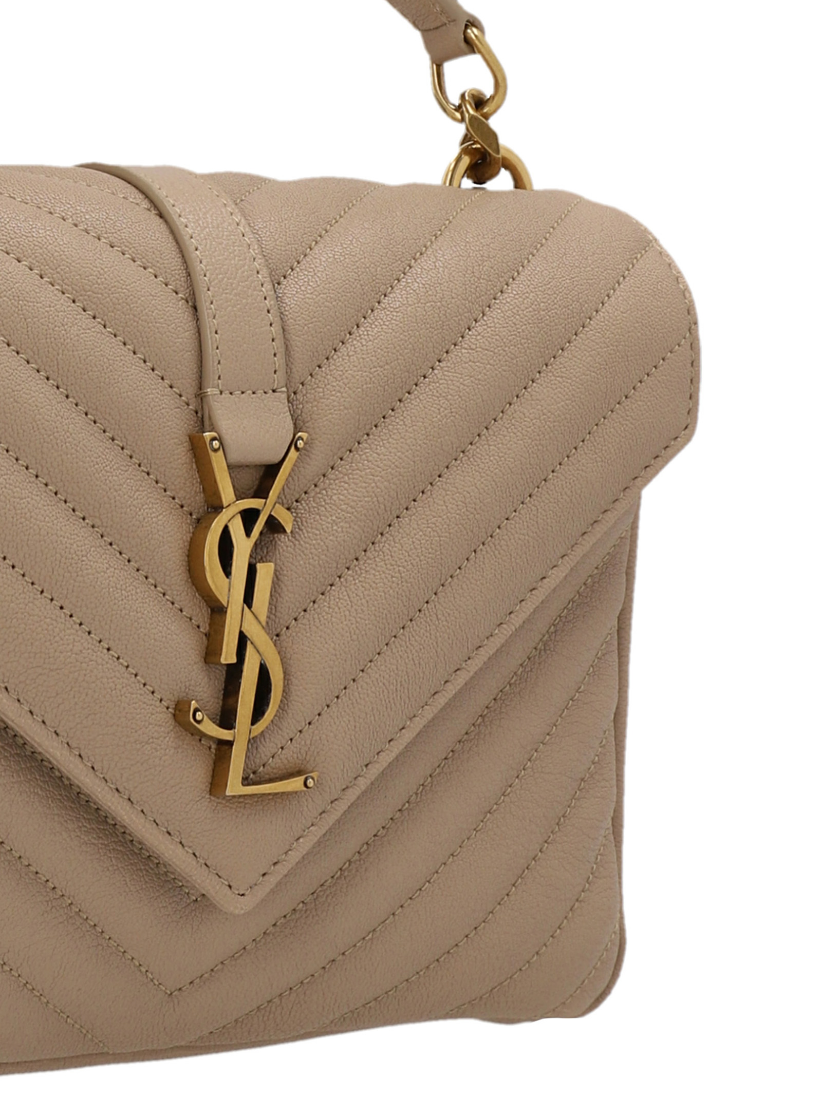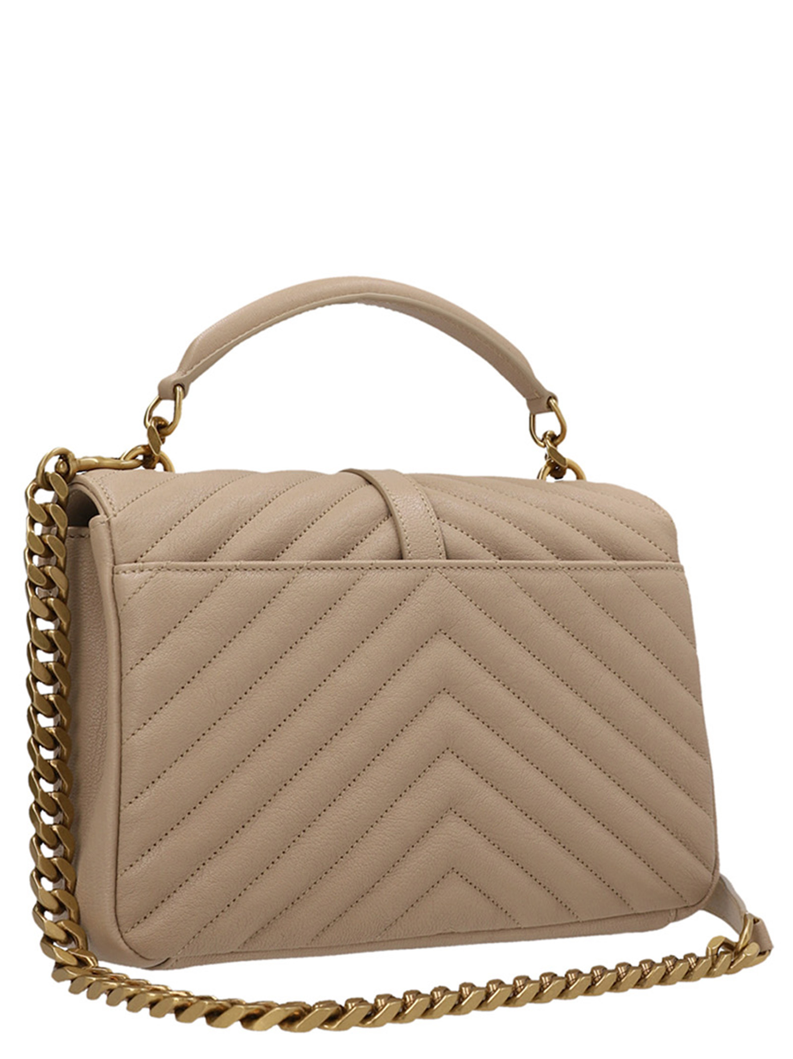 ‘College’ midi crossbody bag in chevron quilted leather with magnetic flap closure with front metal logo, top handle, and removable leather and chain shoulder strap.