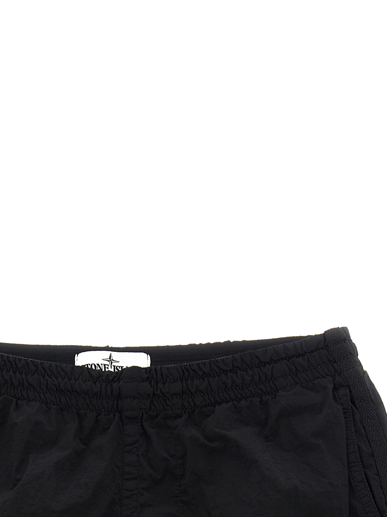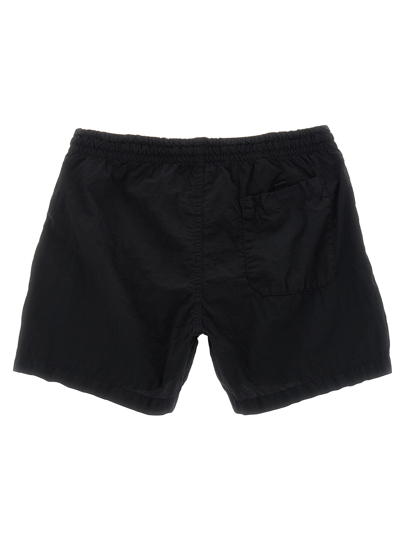 Garment-dyed Nylon Metal swimsuit with a wrinkled-effect two-color recipe, ‘Compass’ logo patch, drawstring elastic waistband, trompe l’oeil flap, pockets, inner briefs in mesh nylon mesh.
