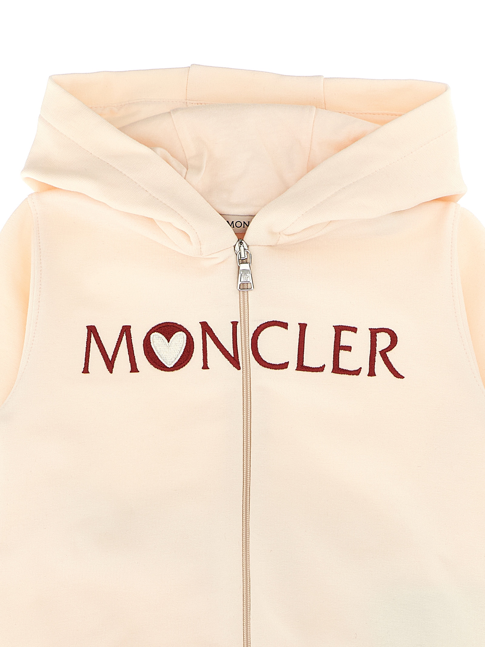 Light fleece cotton suit consisting of hoodie, logo embroidery and front zip closure, long sleeves with cuffs and logo patch in felt and joggers with elastic waistband, ankle cuffs.