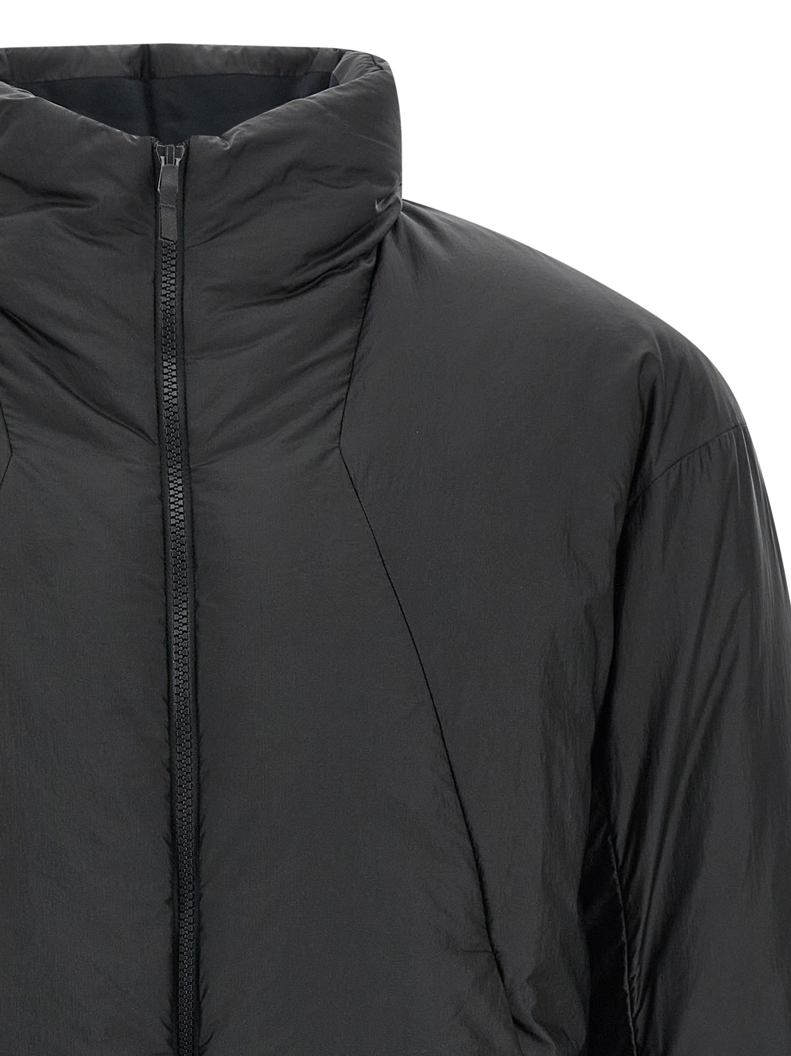 ‘Conduit’ quilted water-repellent mini-ripstop down jacket with composite mapping European grey goose down insulation, standing collar, front zip closure, pockets, long sleeves with windproof gaiter, drawstring at the hem.