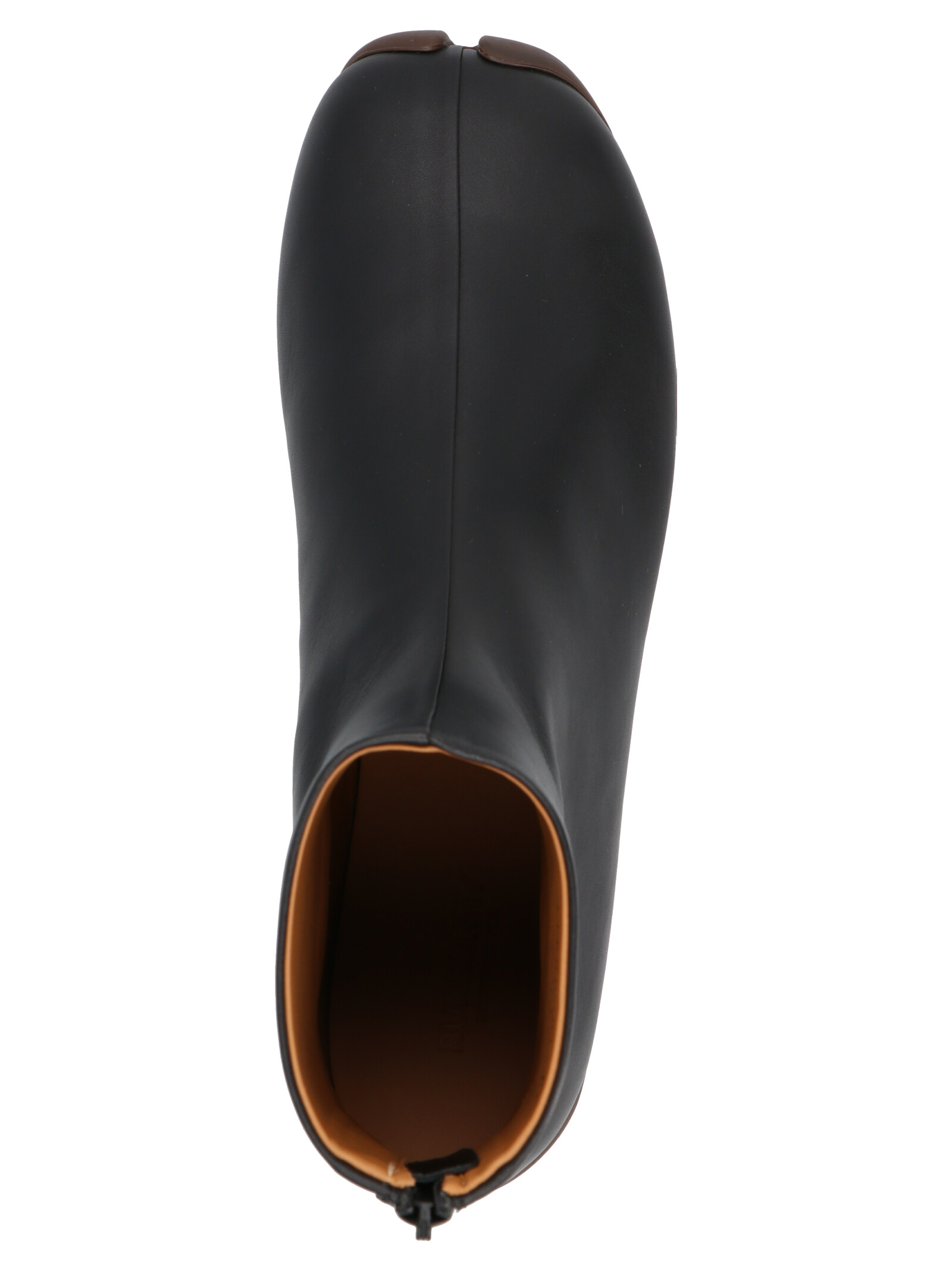 Chelsea leather ankle boots with a back zip closure and a contrast rubber sole.
