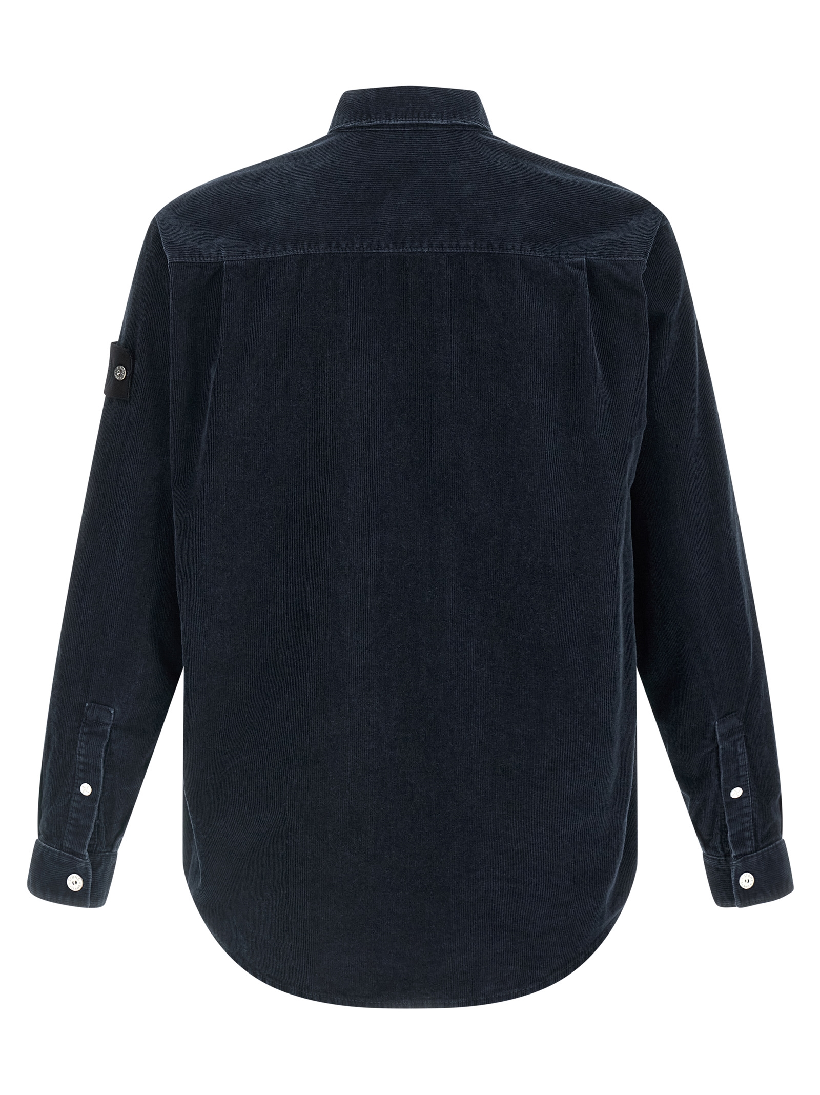 Garment-dyed 800 organic cotton corduroy shirt, front snap button closure, pockets, long sleeves with cuffs and logo badge.