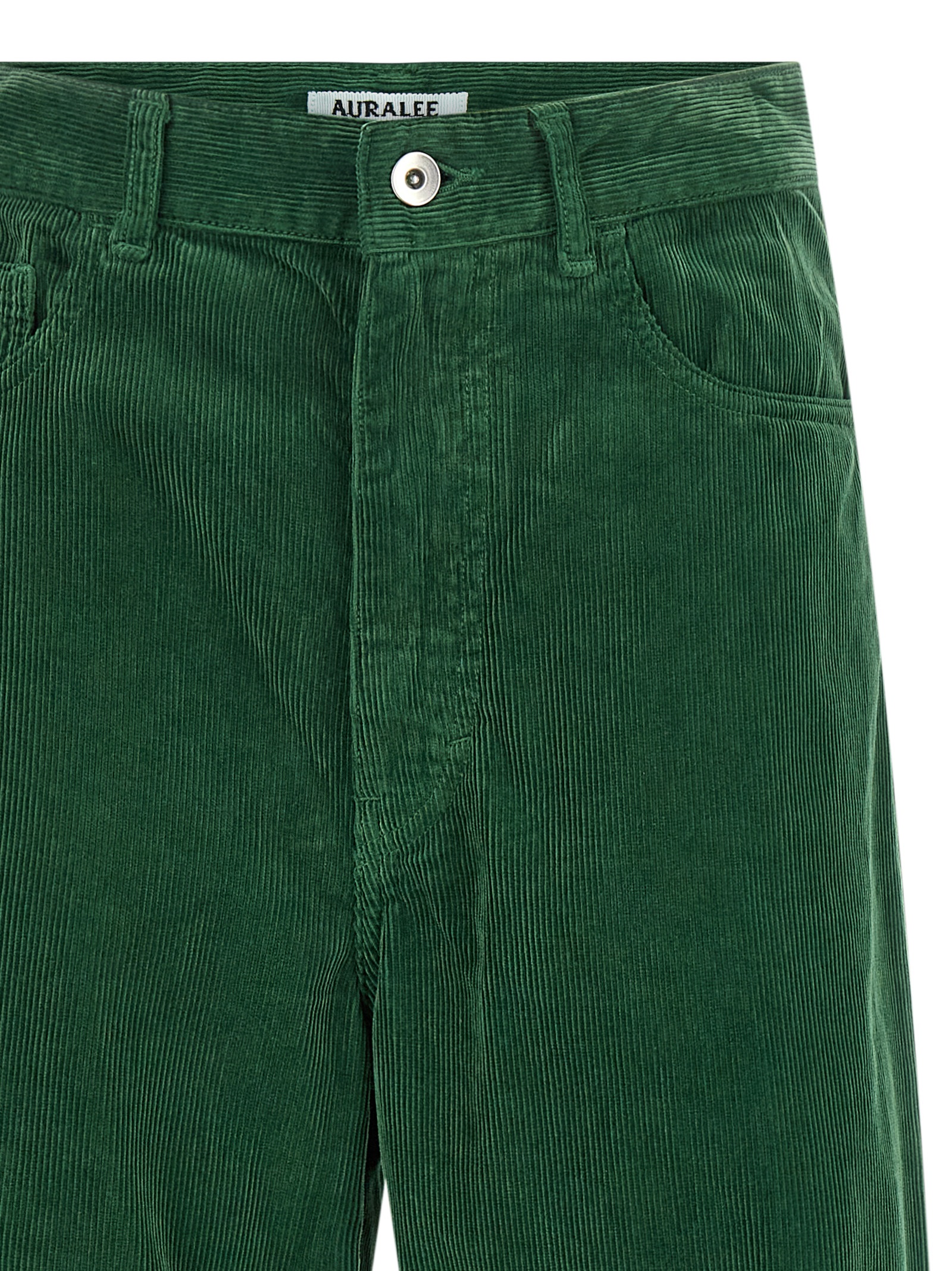Garment-dyed Egyptian Finx corduroy pants with wide and straight leg, zip and front button closure, five pockets.