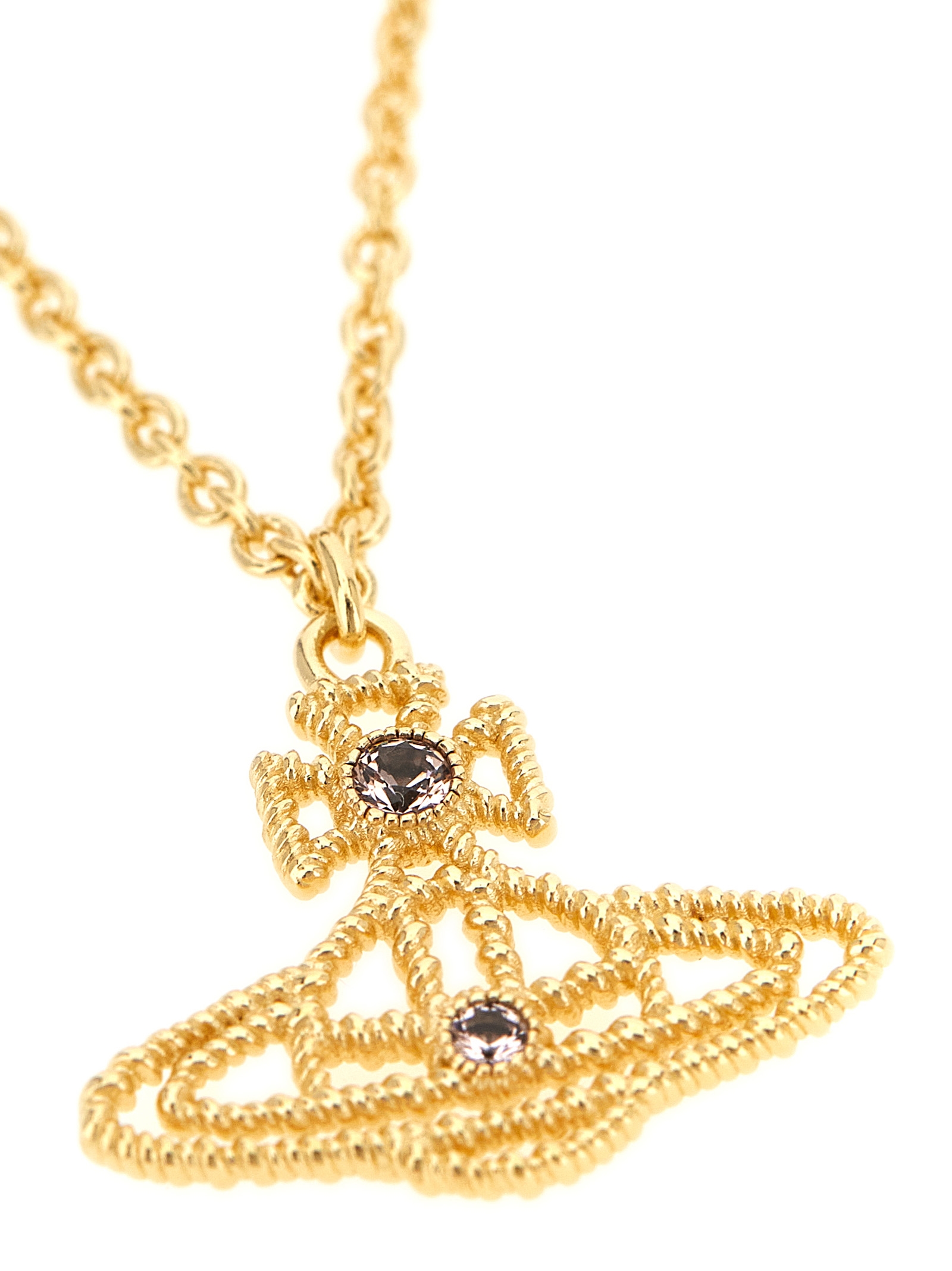 ‘Coretta’ metal chain necklace, ‘Orb’ pendant with embedded crystals, adjustable, clasp closure.