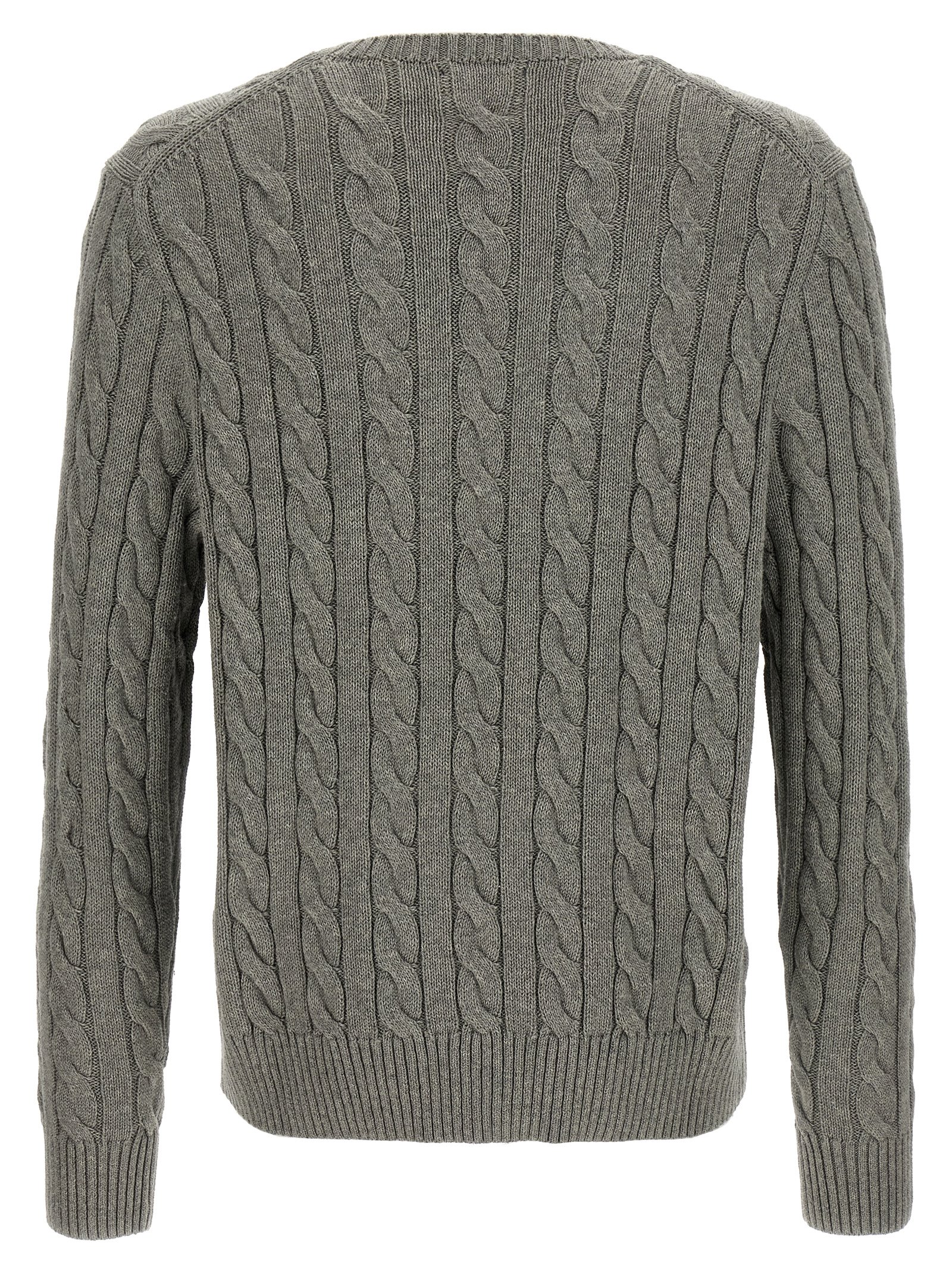 Cotton sweater with texture effect braids, front logo embroidery, crew neck, long cuffed sleeves.