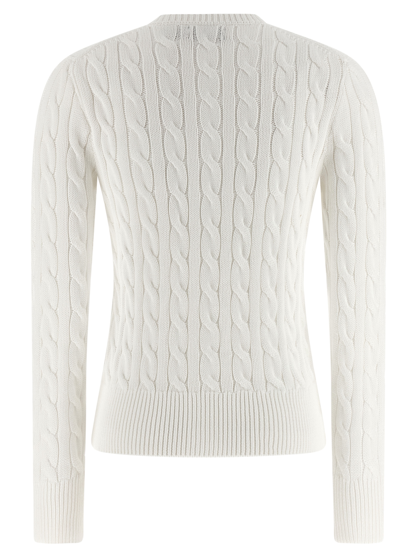 Cardigan in pure cotton braided, slightly crop model, logo embroidery and front button closure, crew neck, long sleeves with cuffs.