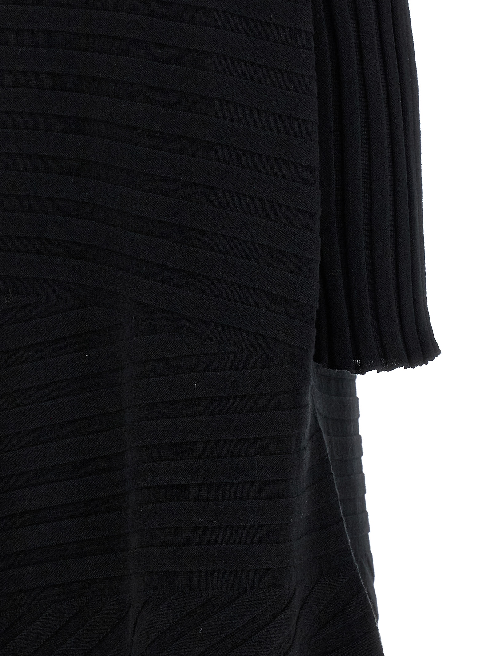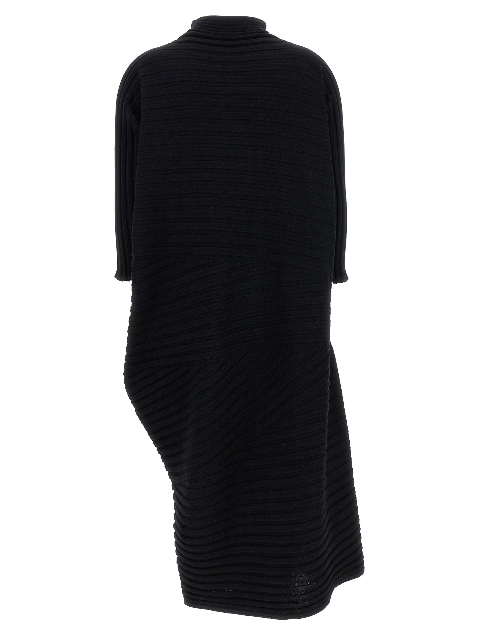 ‘Cotton Cashmere Knit’ midi dress made of cashmere knit using a mix of two knit structures with an irregular texture, unique straight silhouette created by the combination of the two knitted structures in the warp and weft, high neck, 3/4 sleeves, asymmetrical hem.