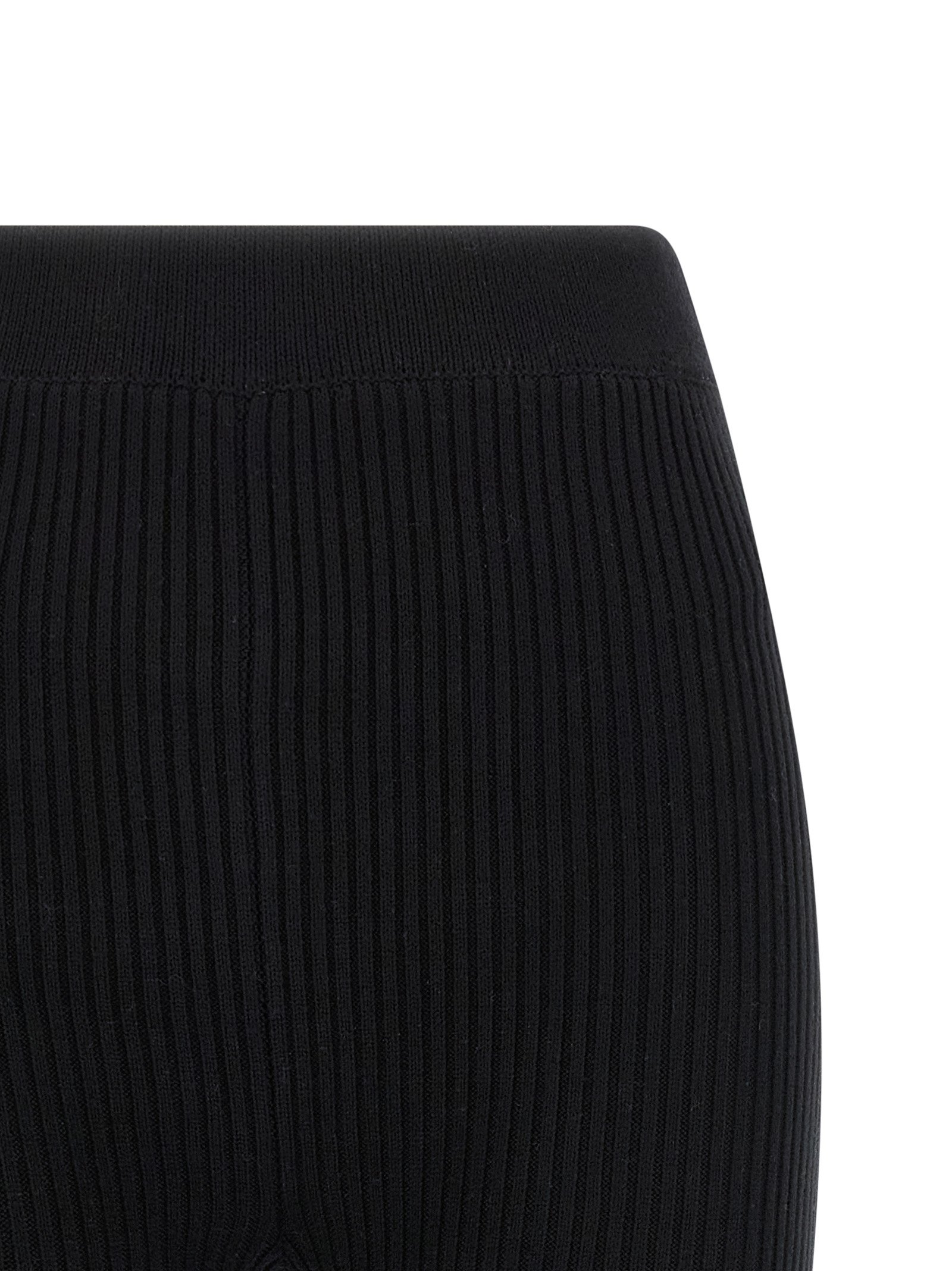 Knitted ribbed stretch cotton ‘Cotton Crochet’ pants with pinocchietto style with tone-on-tone crochet cotton insert on the leg bottom, elastic waistband.