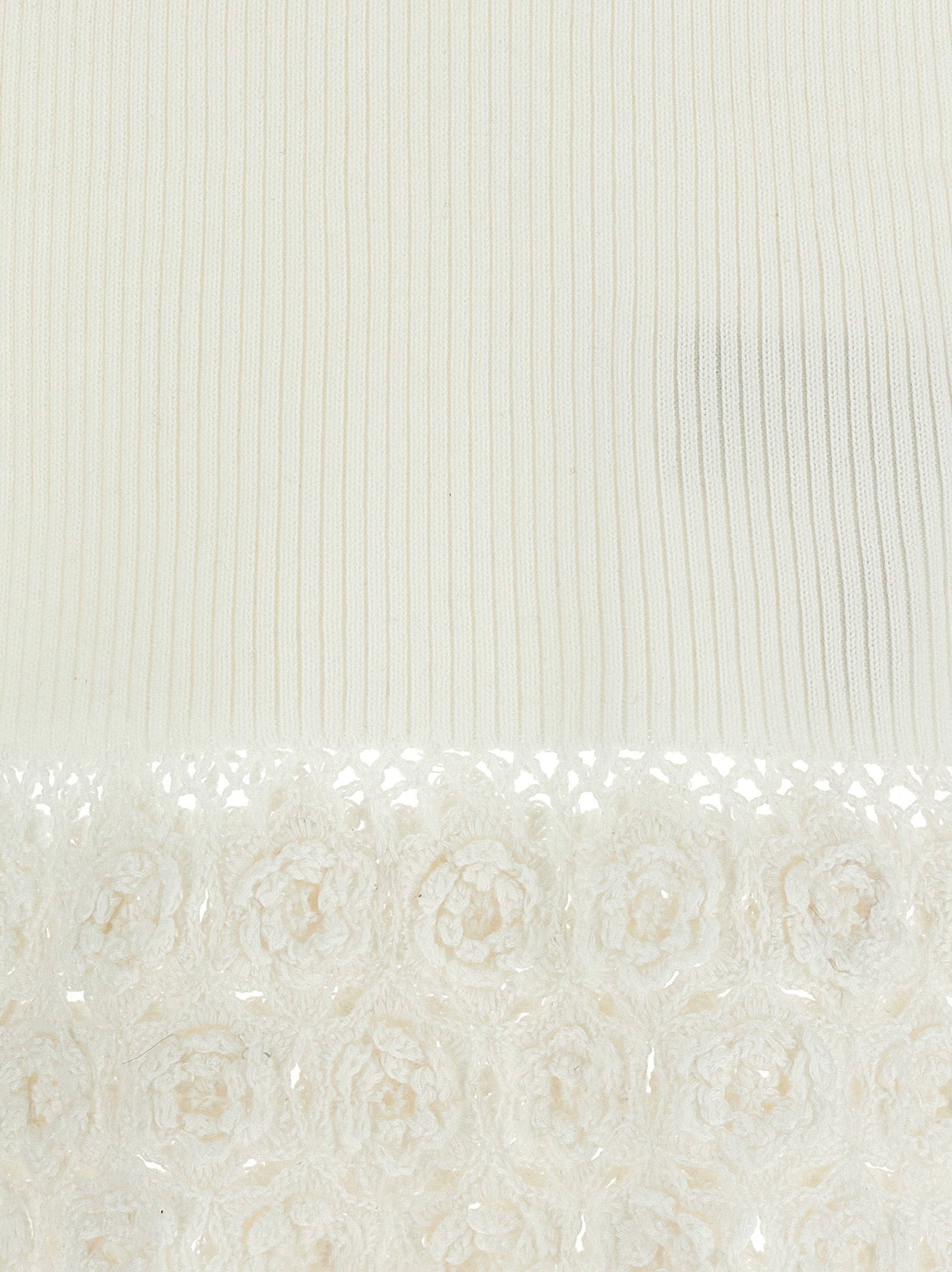 ‘Cotton Crochet’ knitted ribbed stretch cotton vest with V-neck, tone-on-tone crochet cotton insert on the hem.