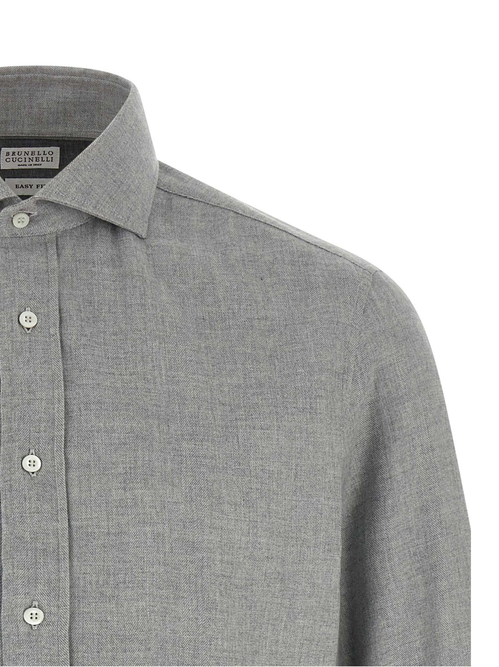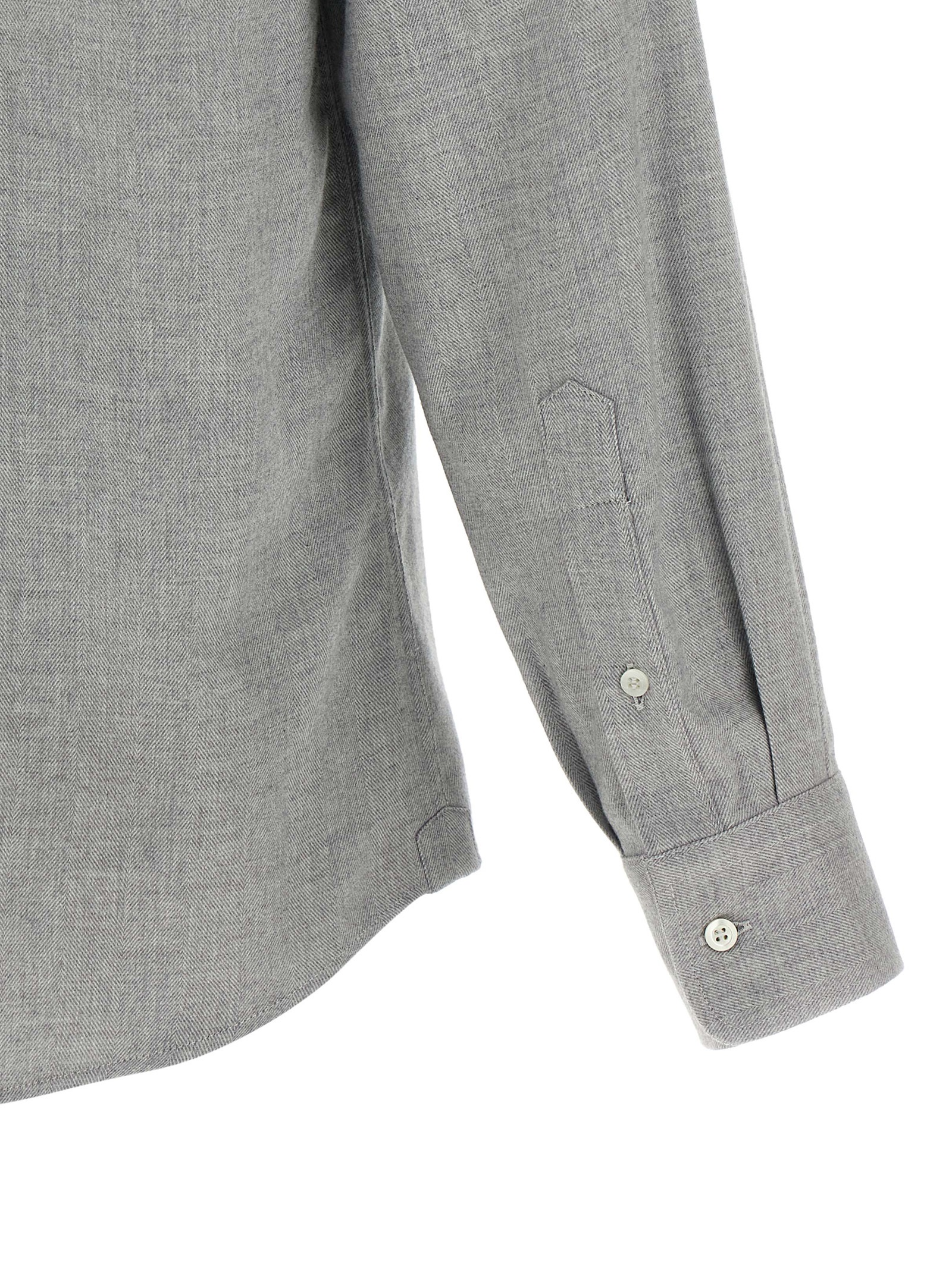 Warm cotton shirt, collar, front button closure, long cuffed sleeves.