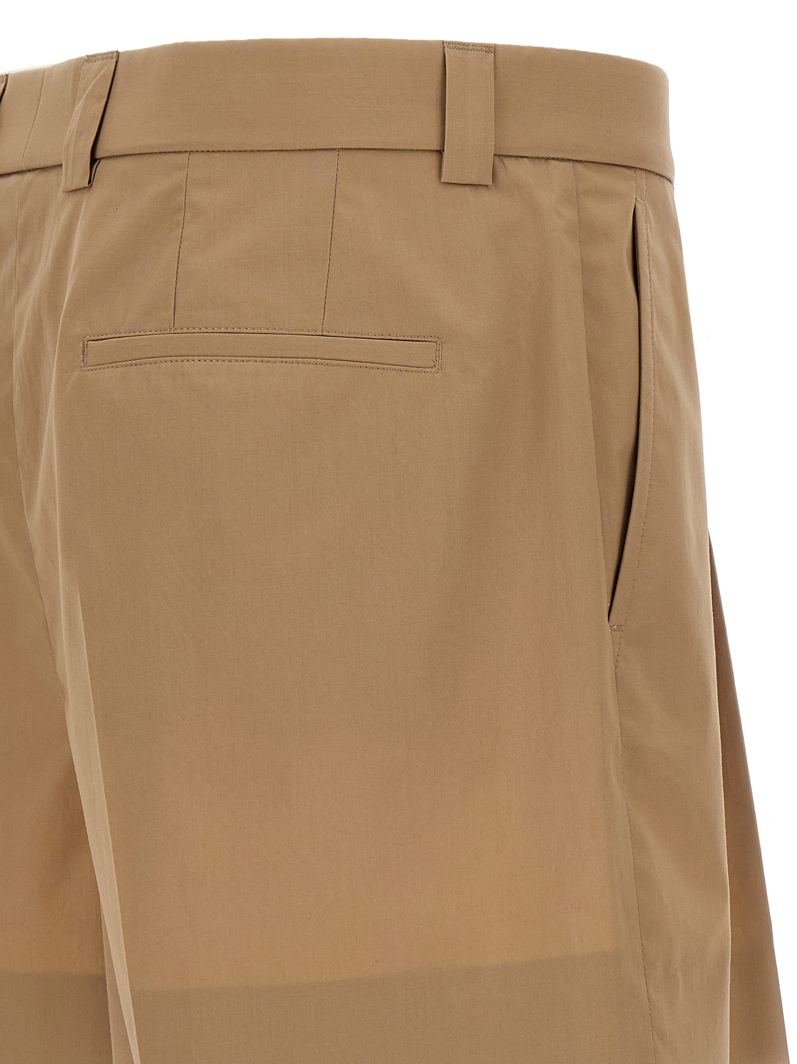 Cotton poplin shorts, front crease pin, embossed logo, zipper hook and front button closure, pockets.