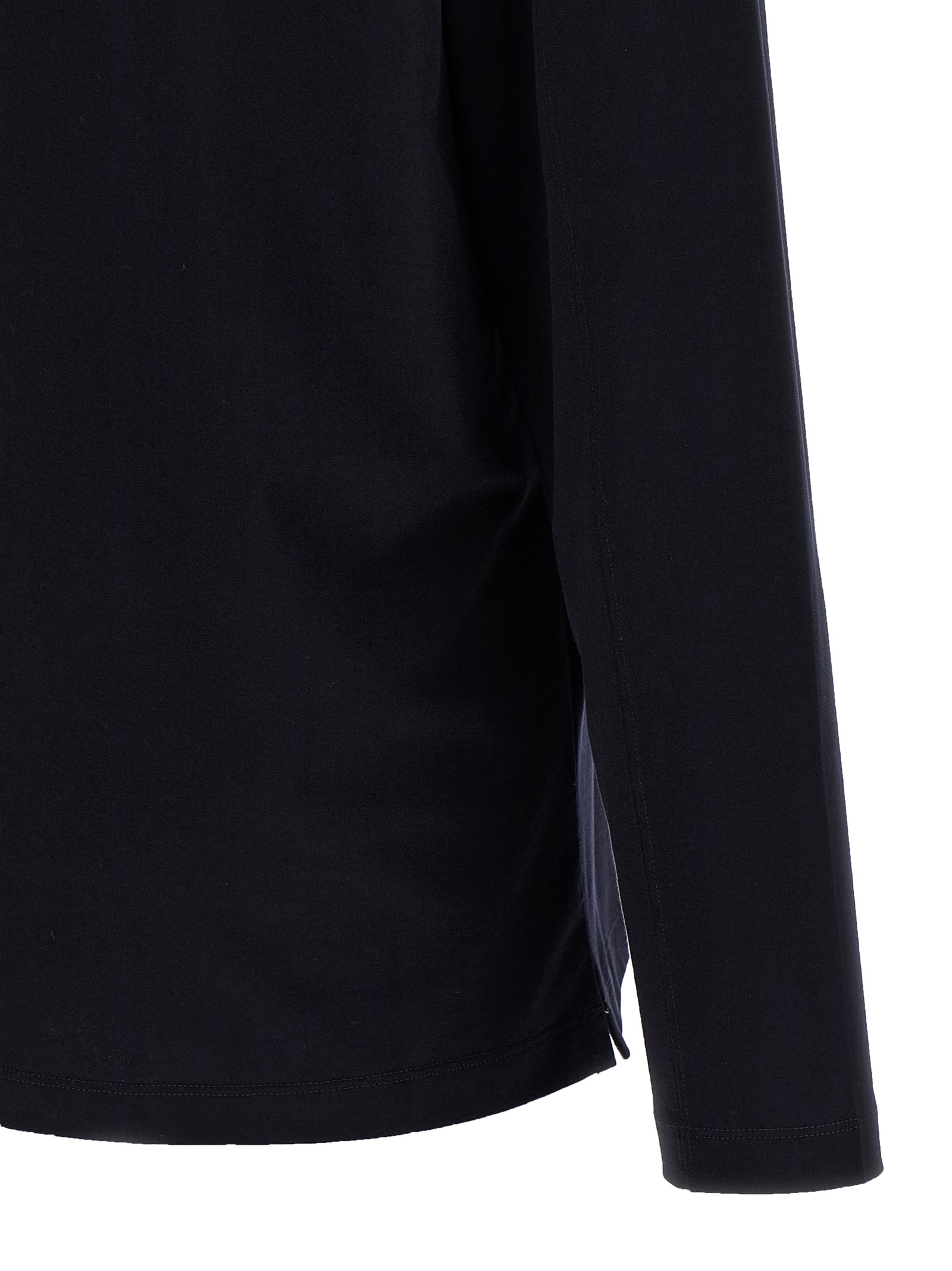Cotton, crewneck, long-sleeved t-shirt, side splits.