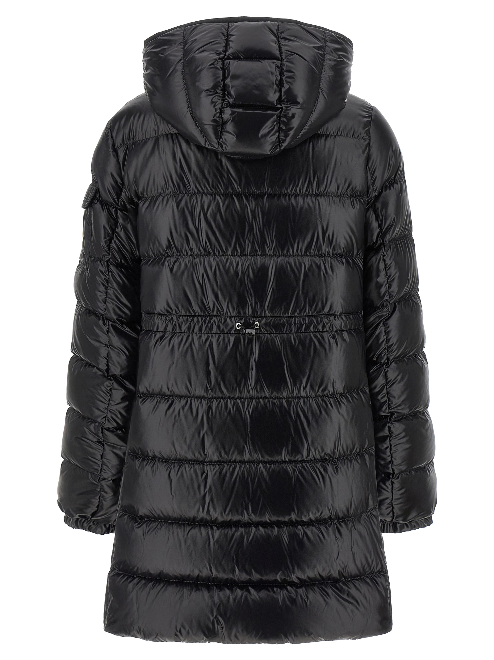 ‘Courcelles’ water-repellent quilted nylon laqué down jacket with goose down padding, adjustable hood with snap button closure, front zip closure, pockets, long sleeves with elastic cuffs, felt logo patch, drawstring at the waist and on the hem.
