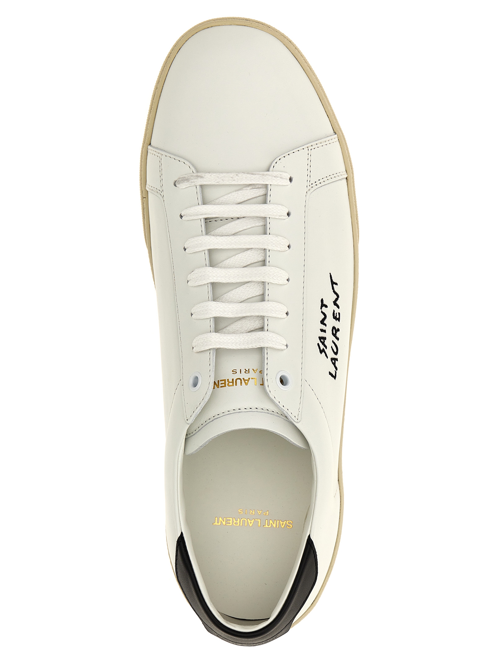 ‘Court SL/06’ leather sneakers with logo print, lace-up closure, rubber sole, contrast heel.