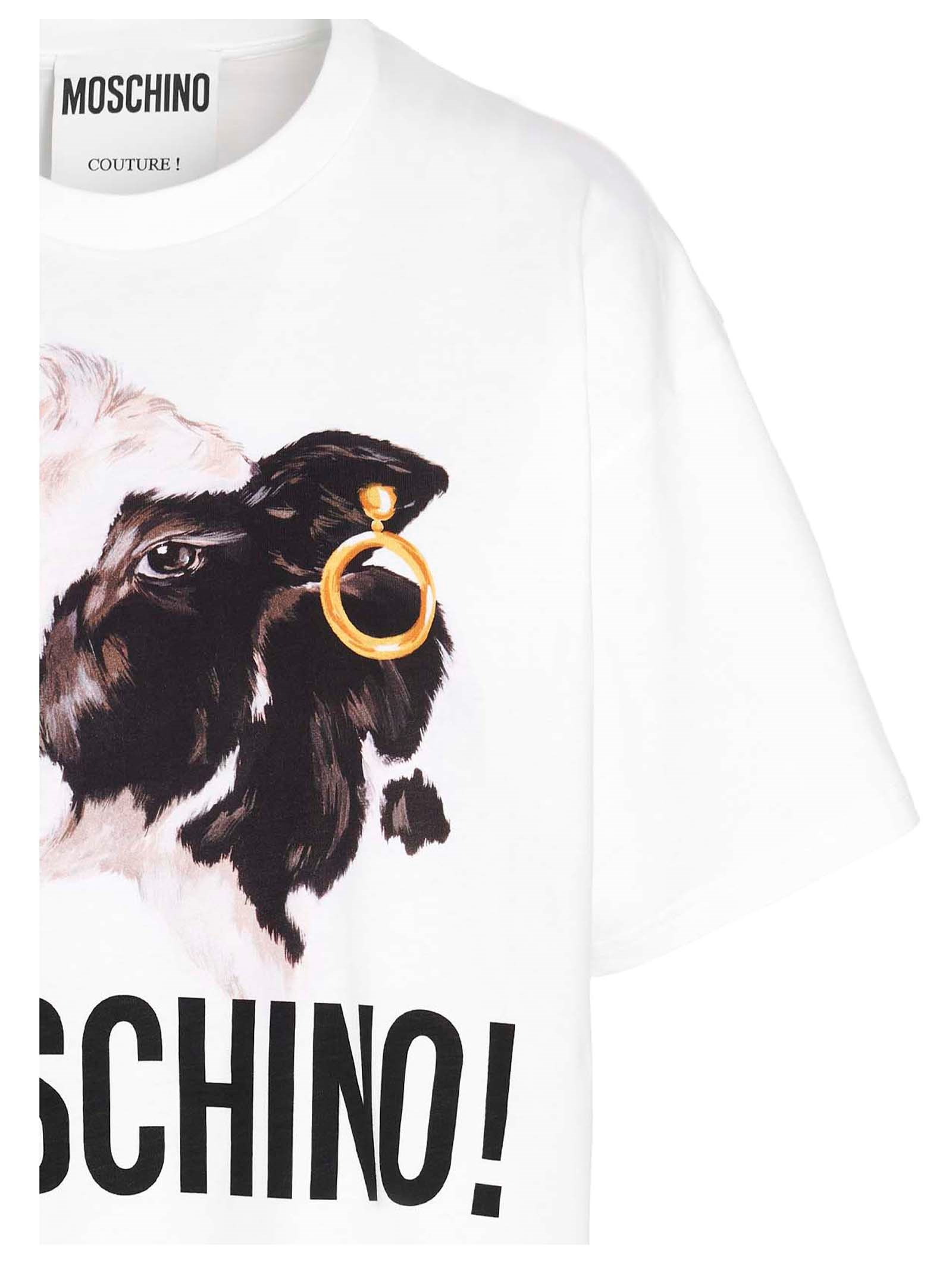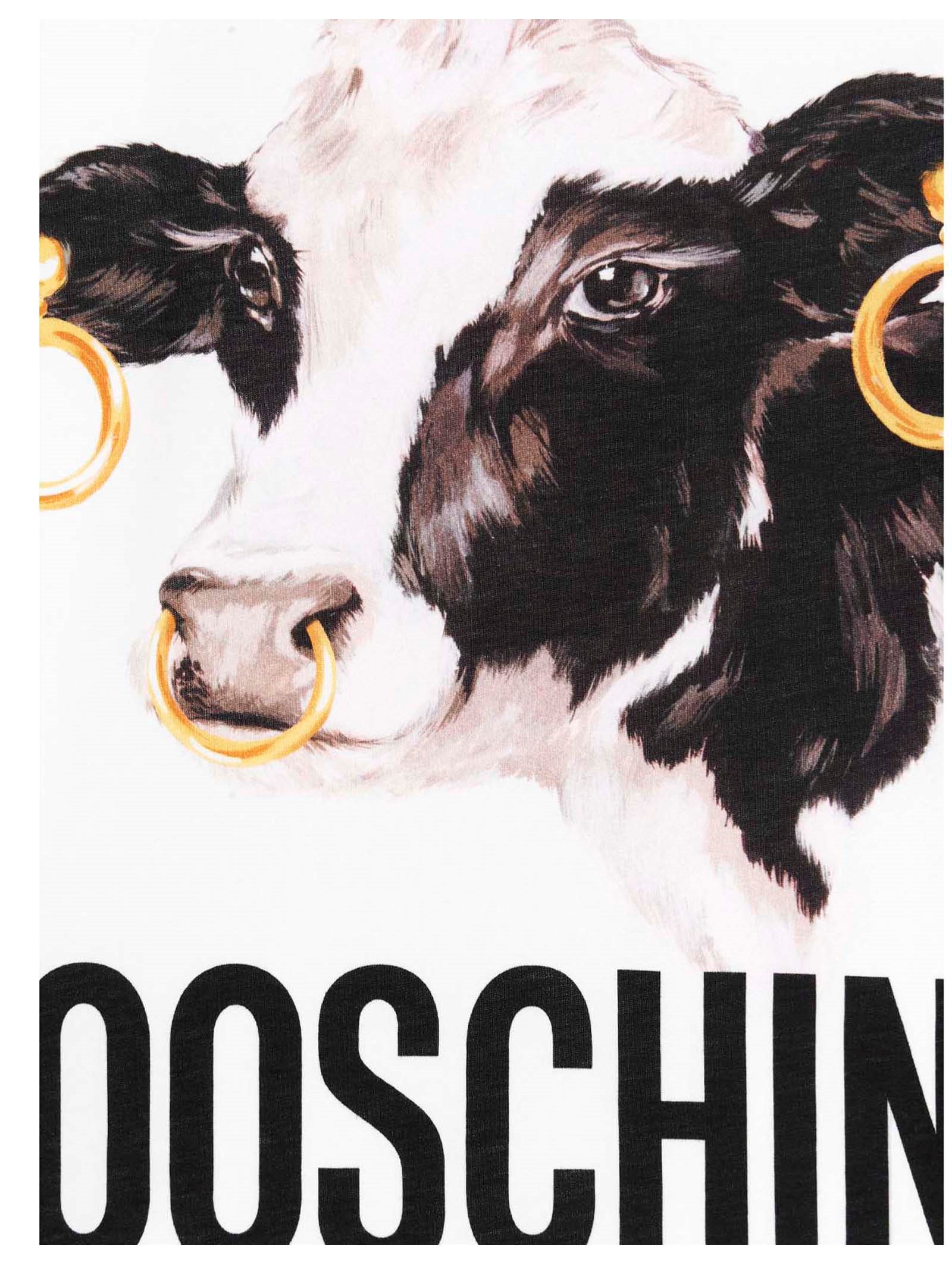 Crewneck, cotton t-shirt with a logo print and featuring a cow print.