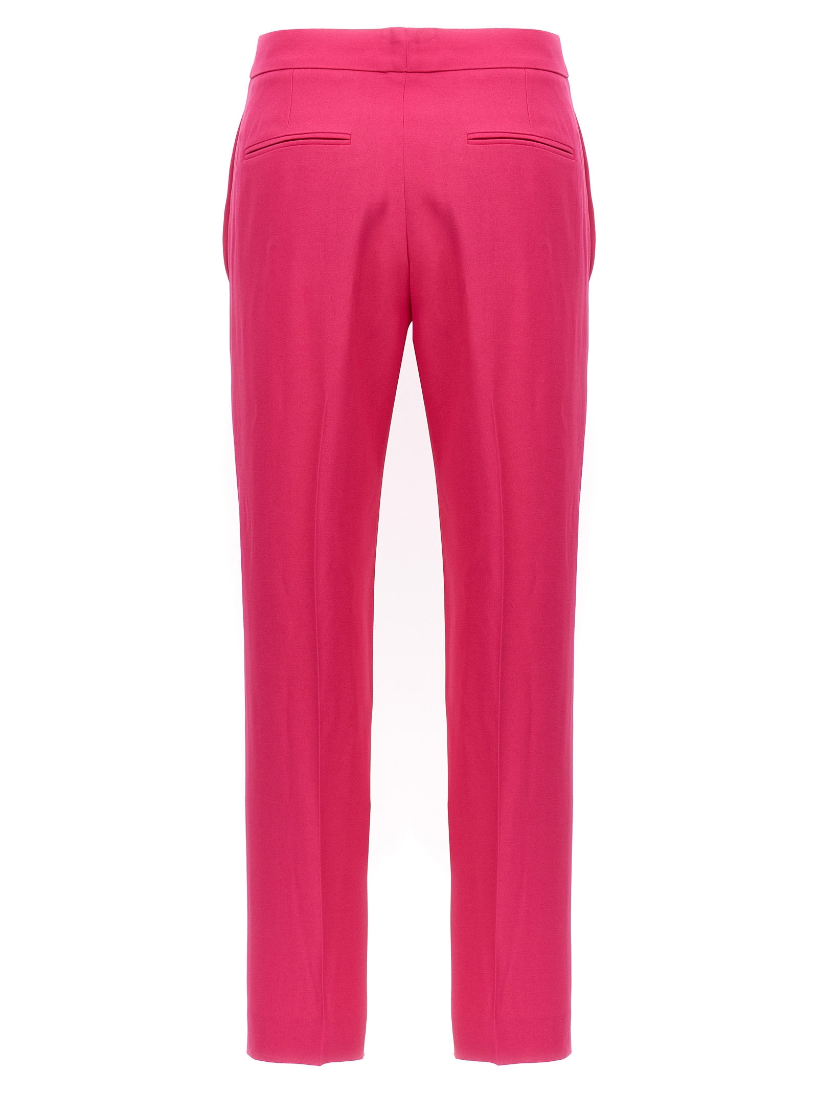 Thin crêpe viscose blend high waist pants, with two side pockets and a welt pocket at the back, a concealed zip and hook closure.