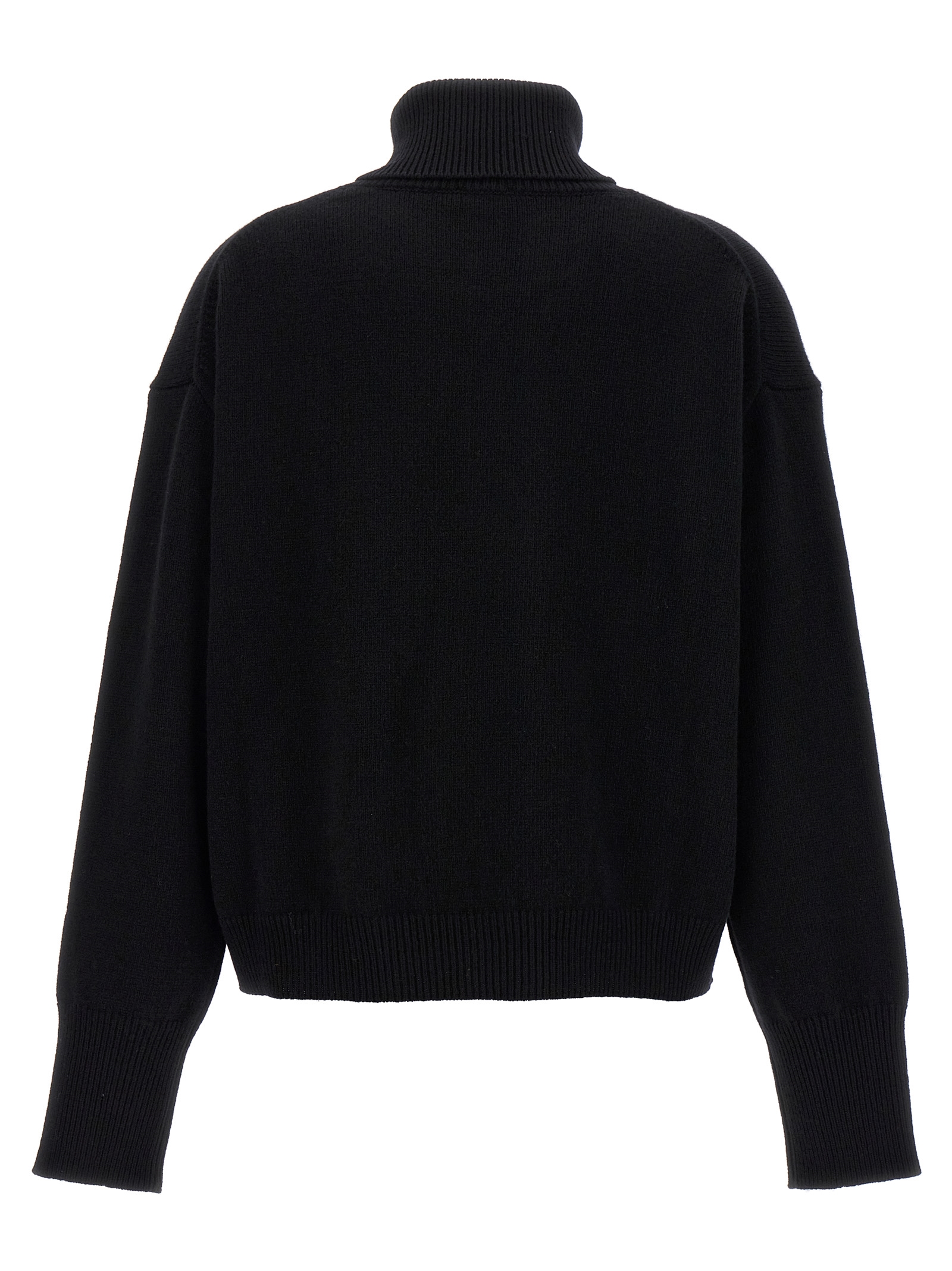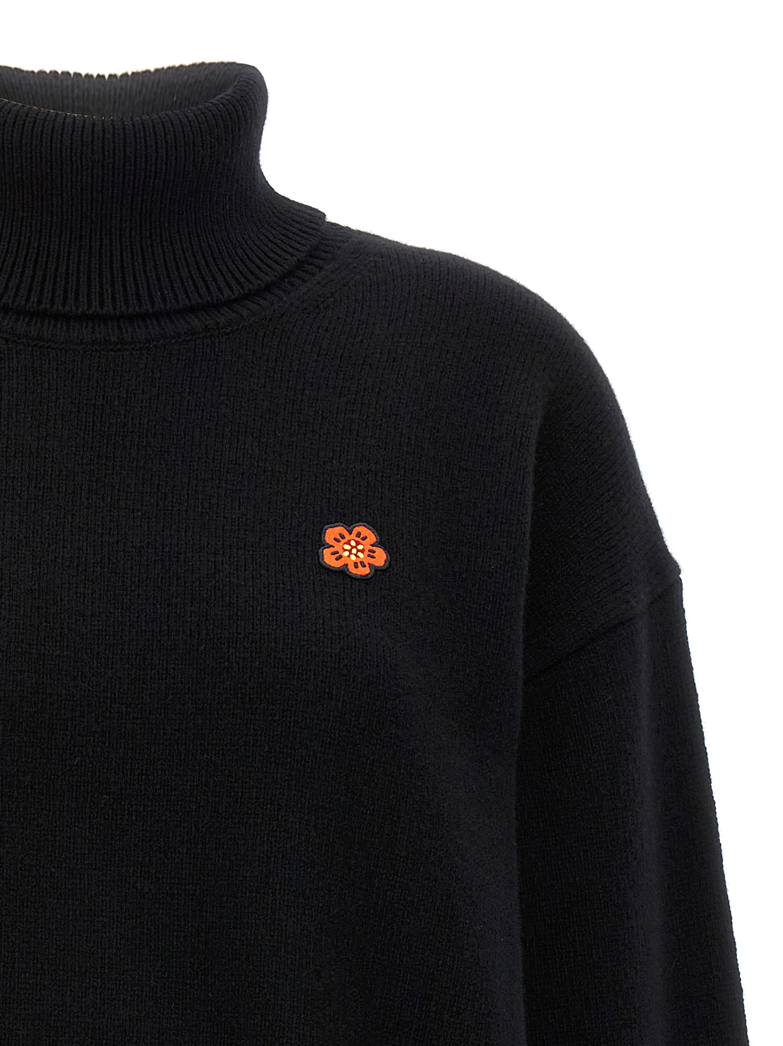 Crest Logo wool, turtleneck sweater with long cuffed sleeves and a front logo patch.