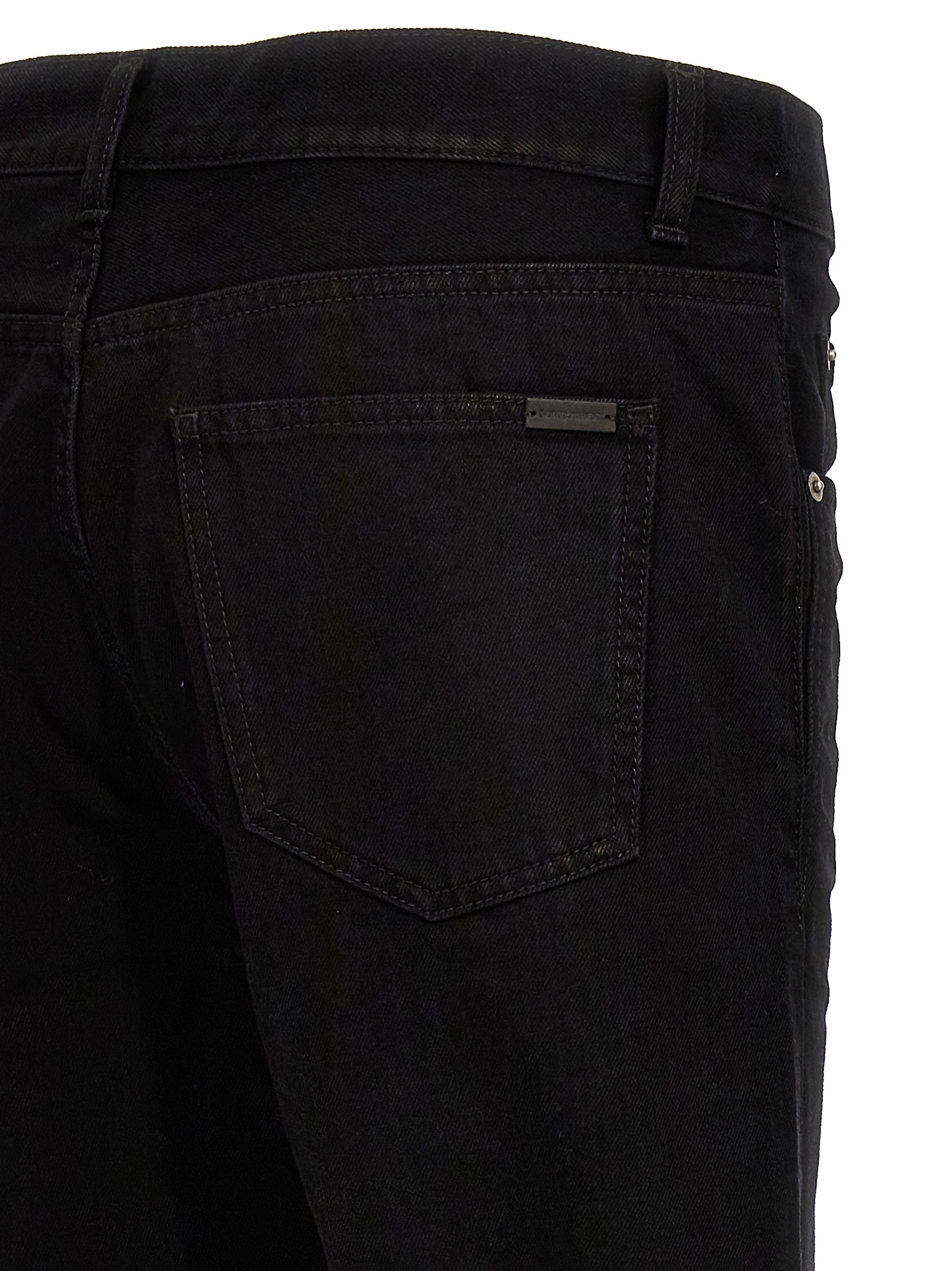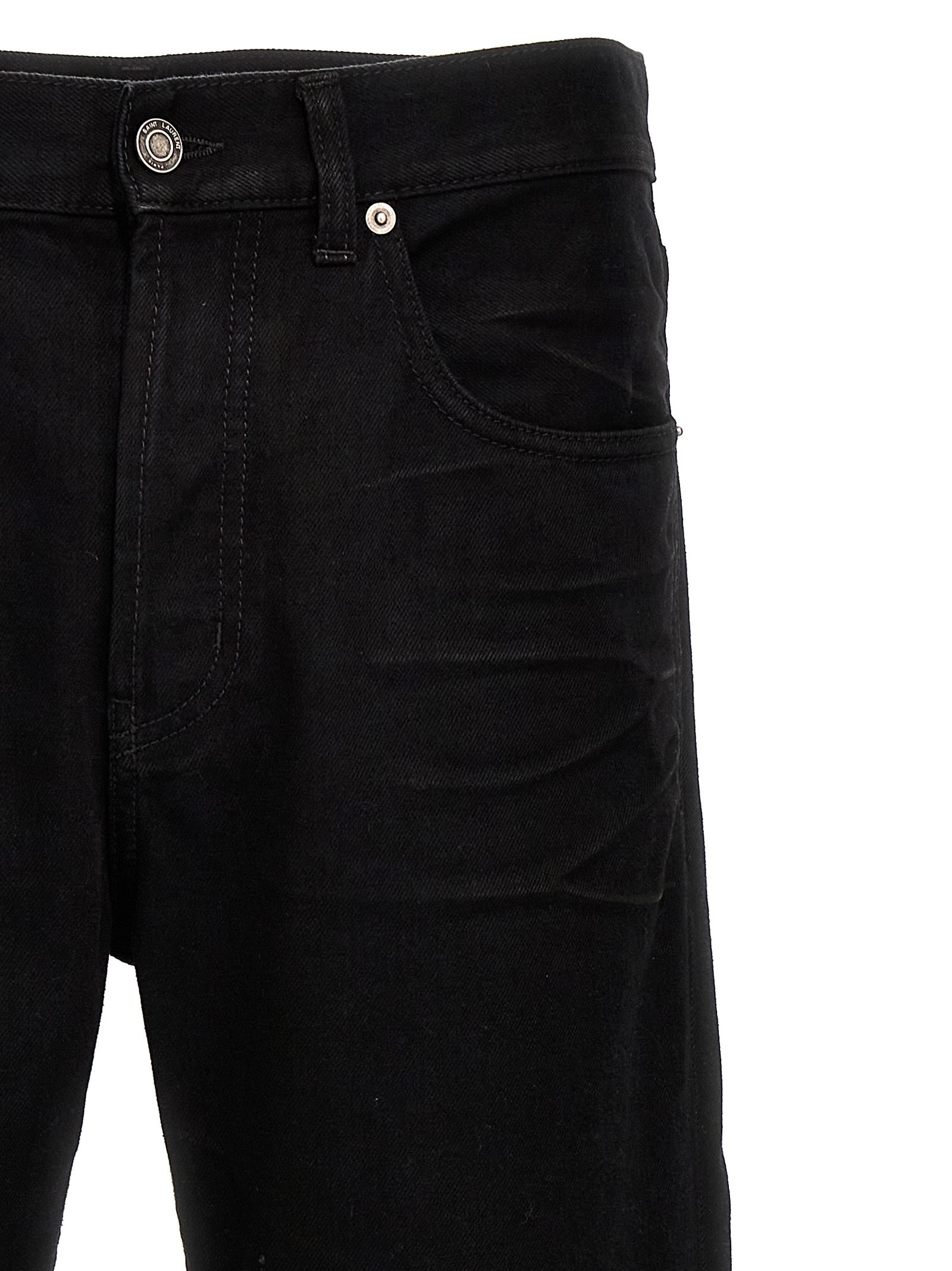 Cotton denim jeans with wrinkled effect details, button closure, five pockets.