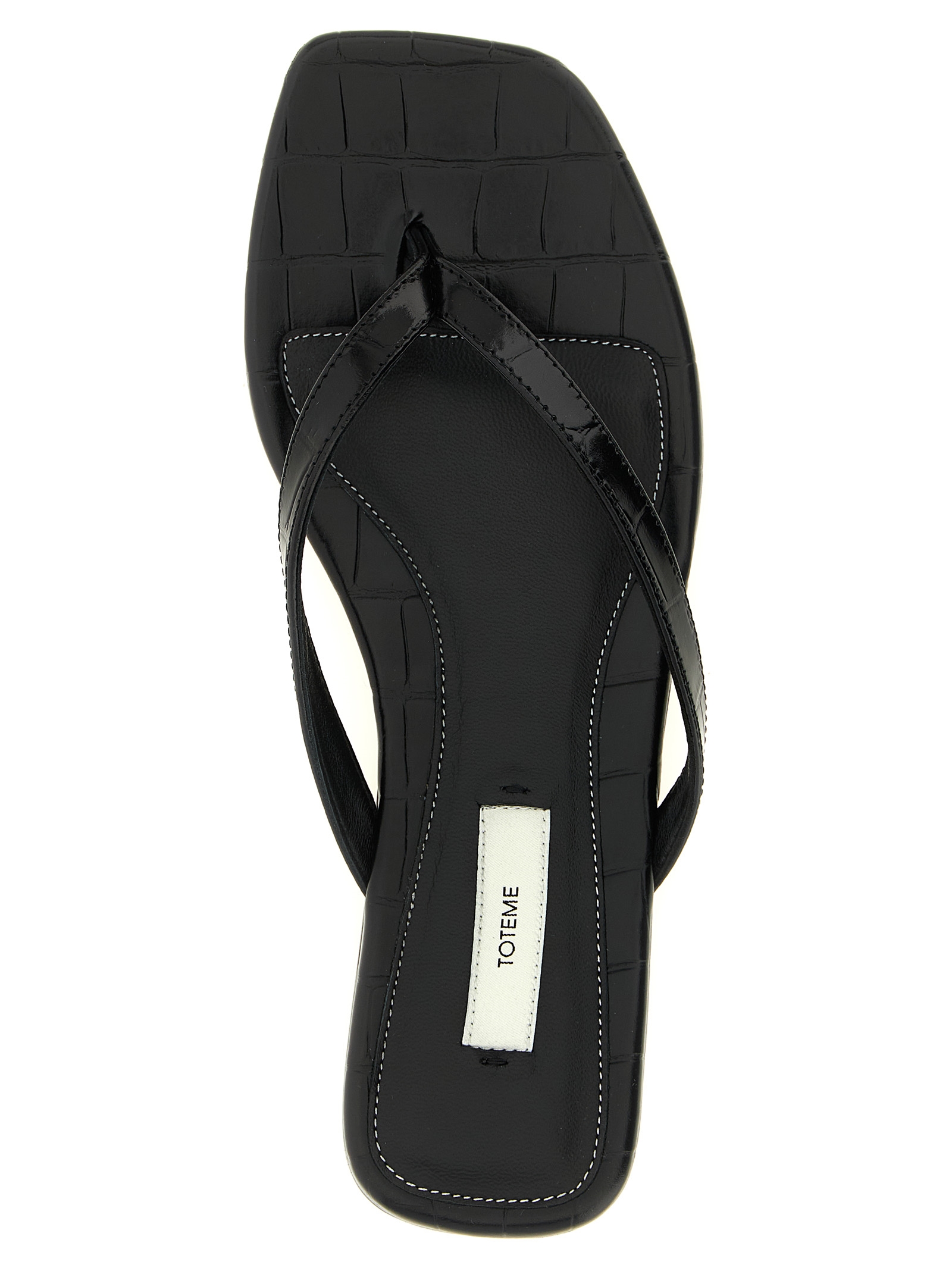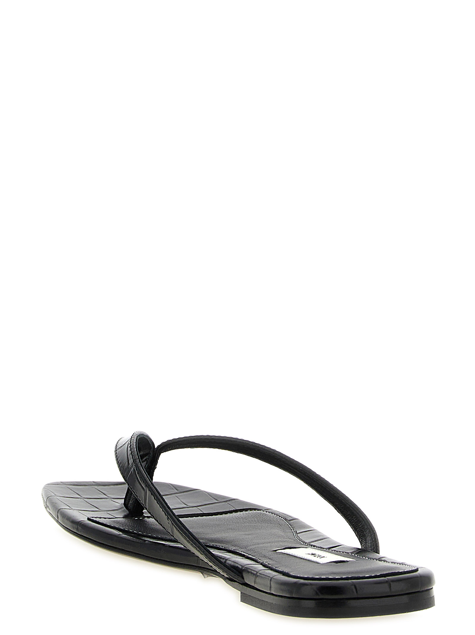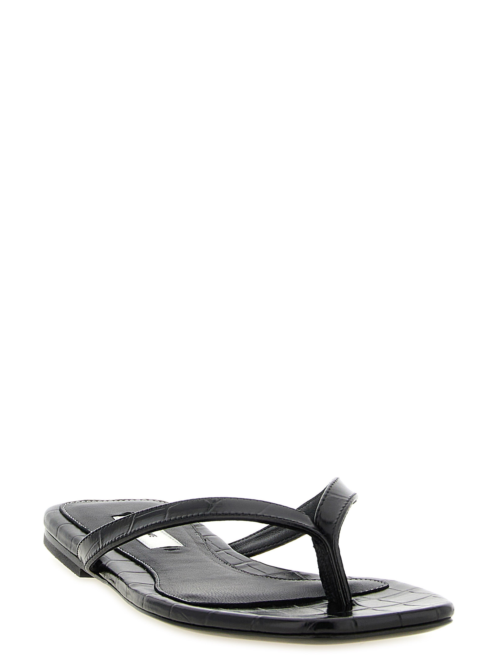 ‘Croco-embossed’ crocodile-effect leather slides, flip-flops model, leather insole and leather sole.