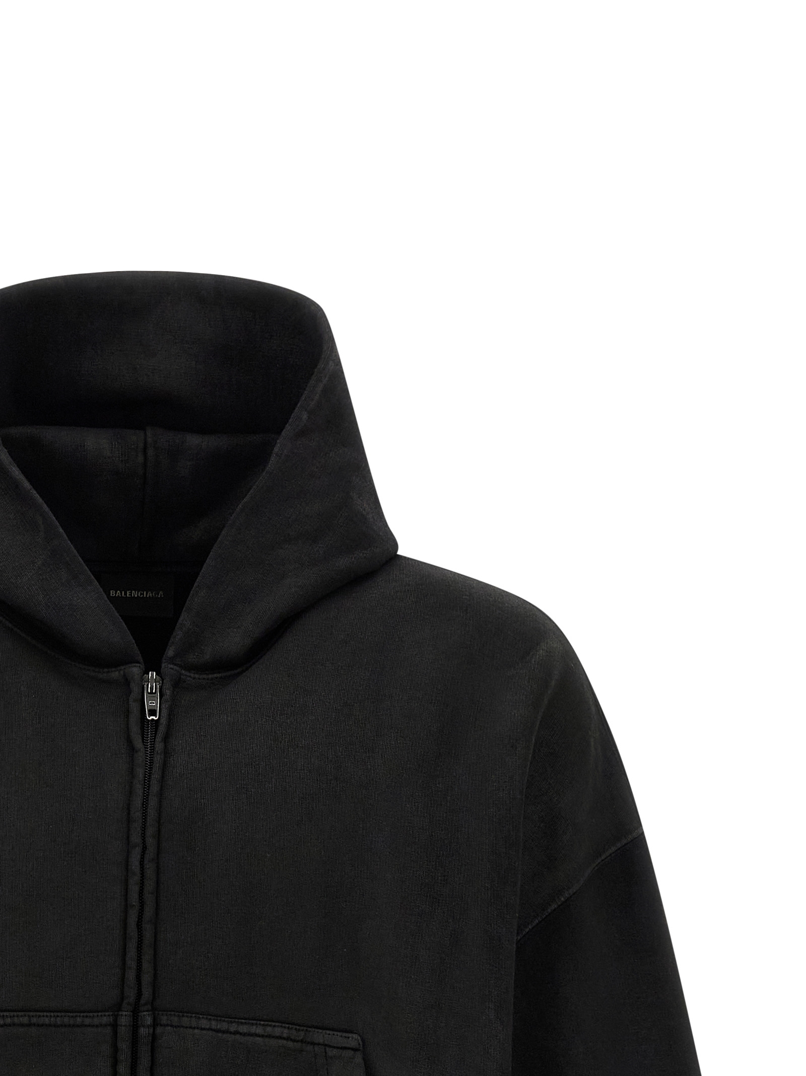Hoodie in gauze cotton with délavé effect, crop model, front zip closure, pockets, long sleeves with cuffs and dropped shoulders, band on the hem.