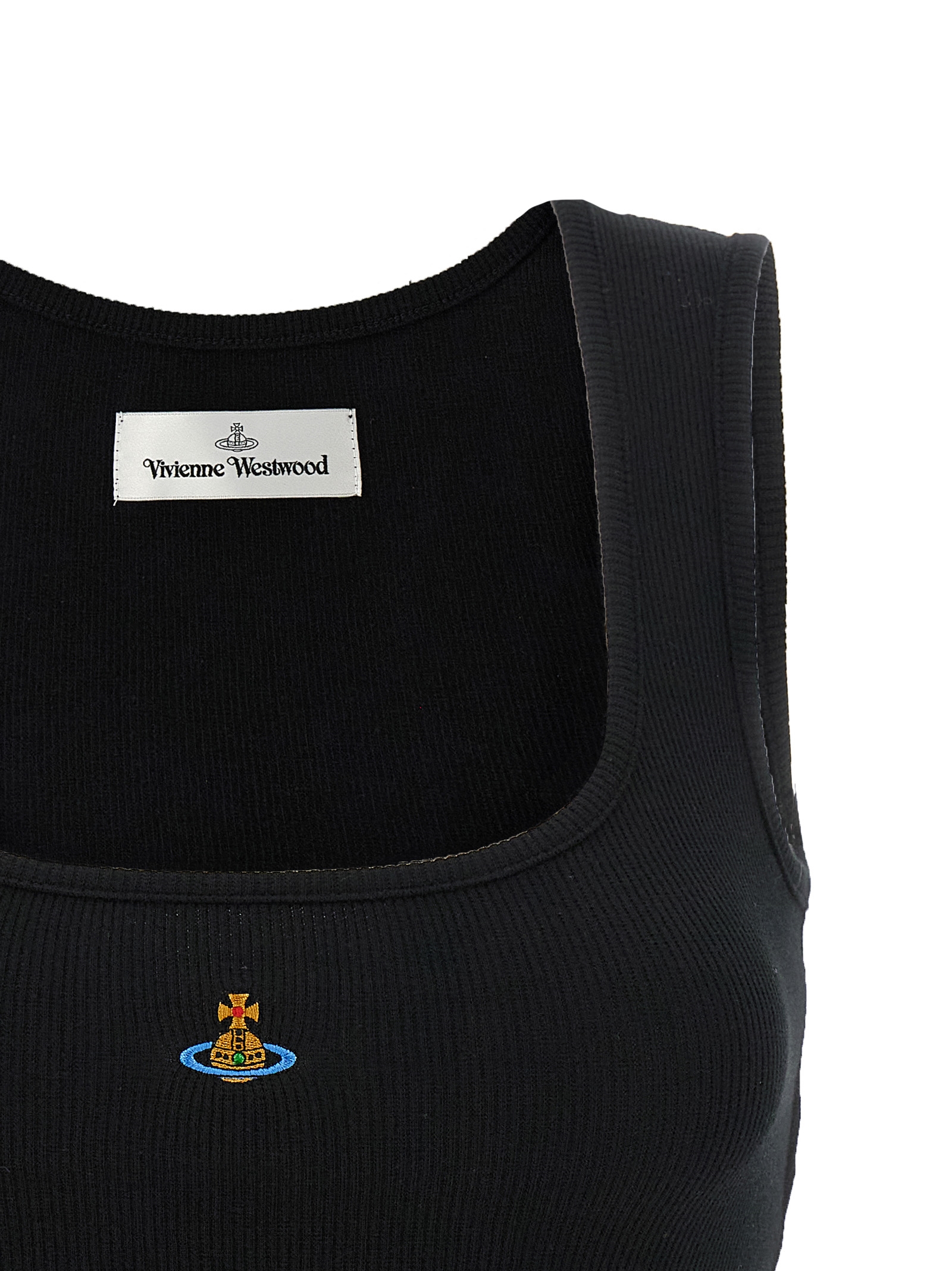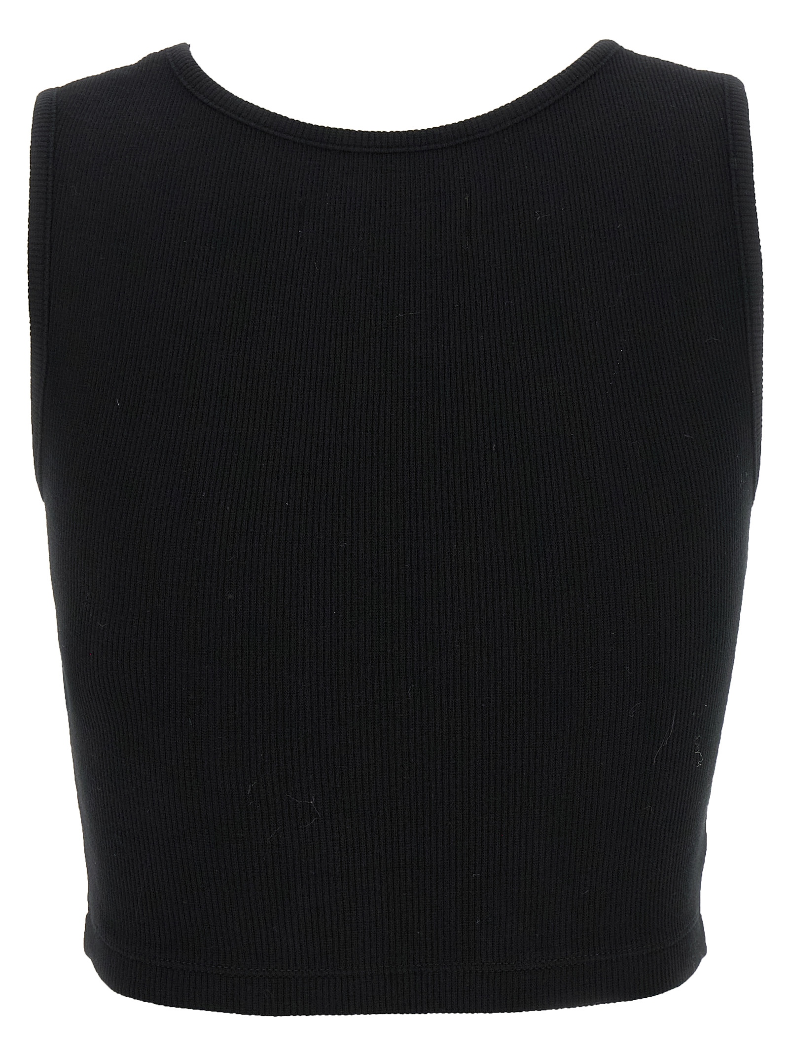 ‘Cropped Rib’ crop top in ribbed cotton jersey with ‘Orb’ logo embroidery on the front, square neckline.