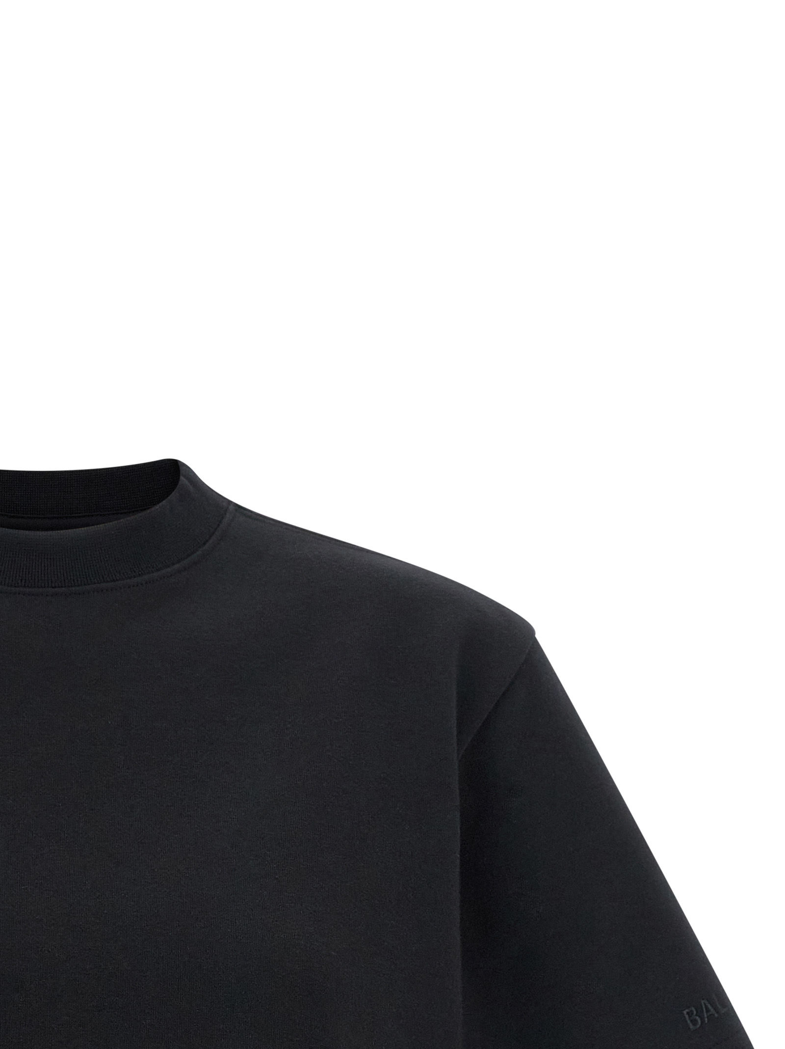 Heavy cotton cropped crew neck t-shirt with short sleeves.