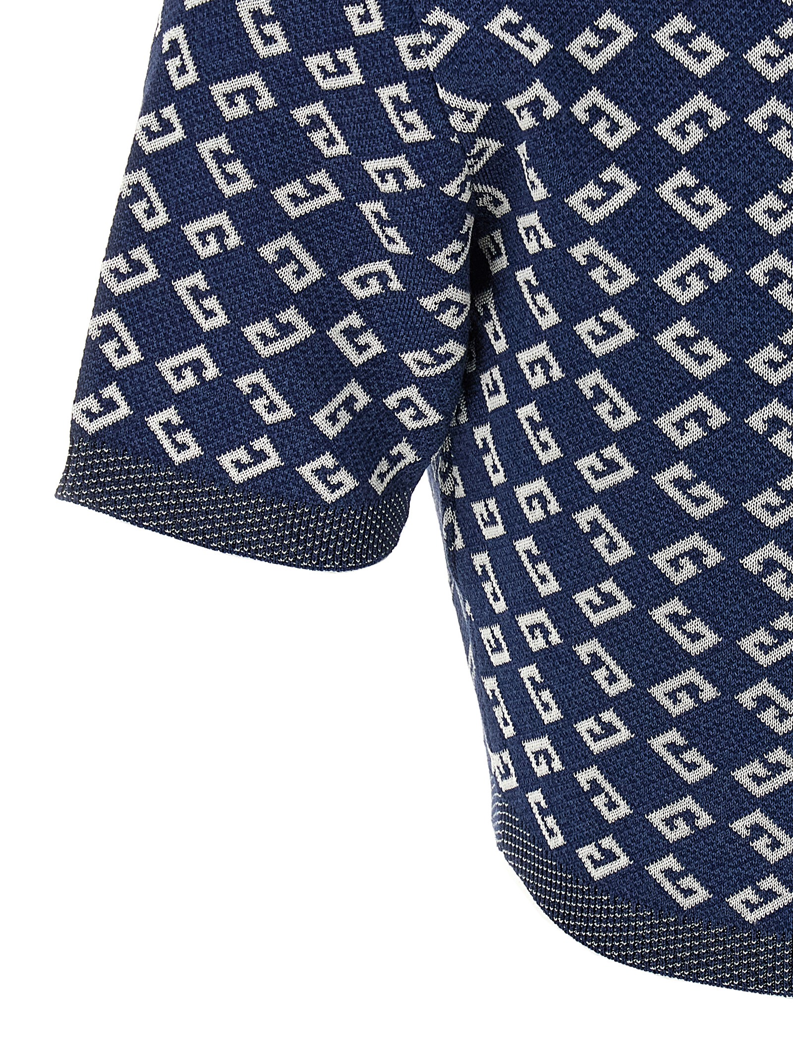 ‘cropped’ top in stretch jacquard with all-over ‘G’ pattern, round neck, short sleeves.