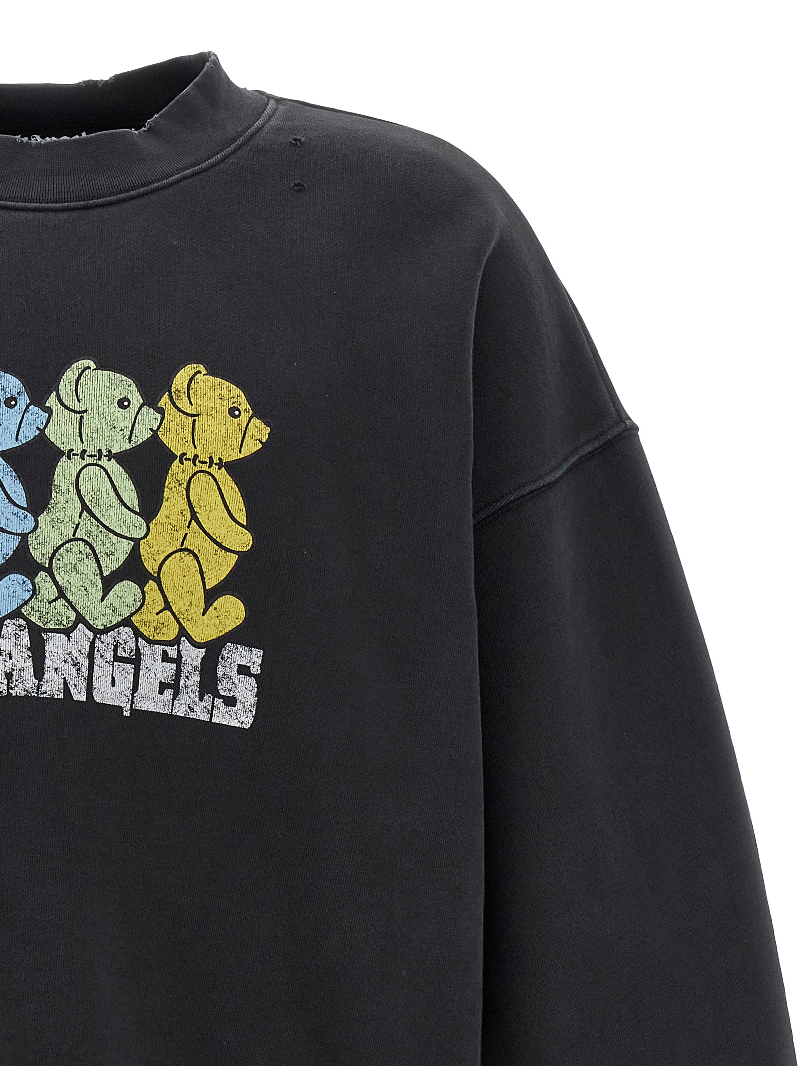 Gauze cotton sweatshirt with used-effect details, front ‘Crossroads Bears’ print, crew neck, long cuffed sleeves and dropped shoulders.