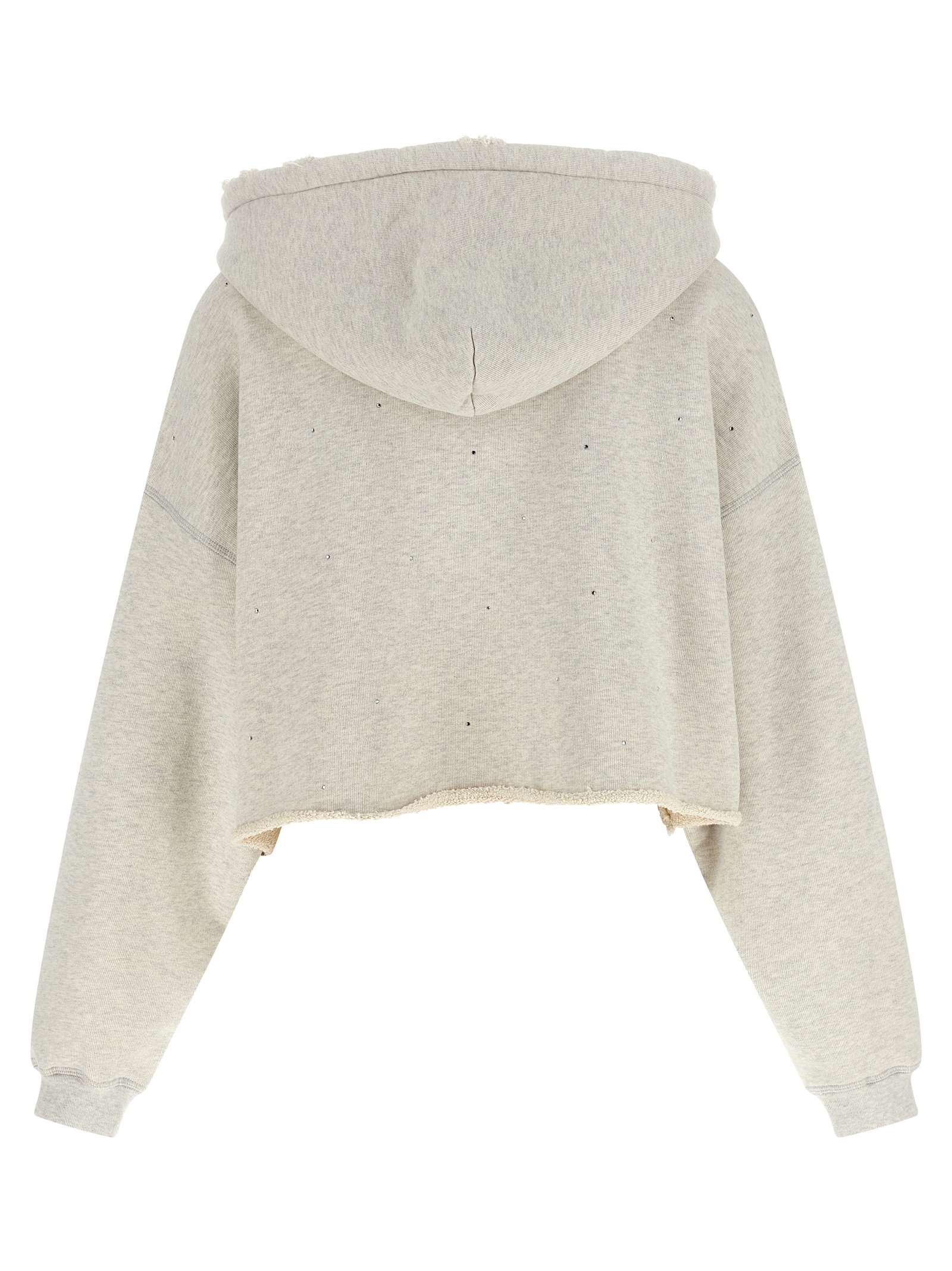 Used-effect mélange cotton terry hoodie with all-over crystal appliqué,