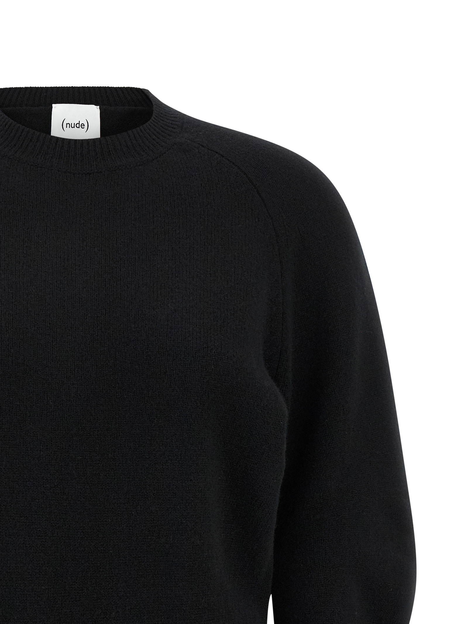 Virgin wool crewneck sweater with long cuffed sleeves and a curved silhouette.